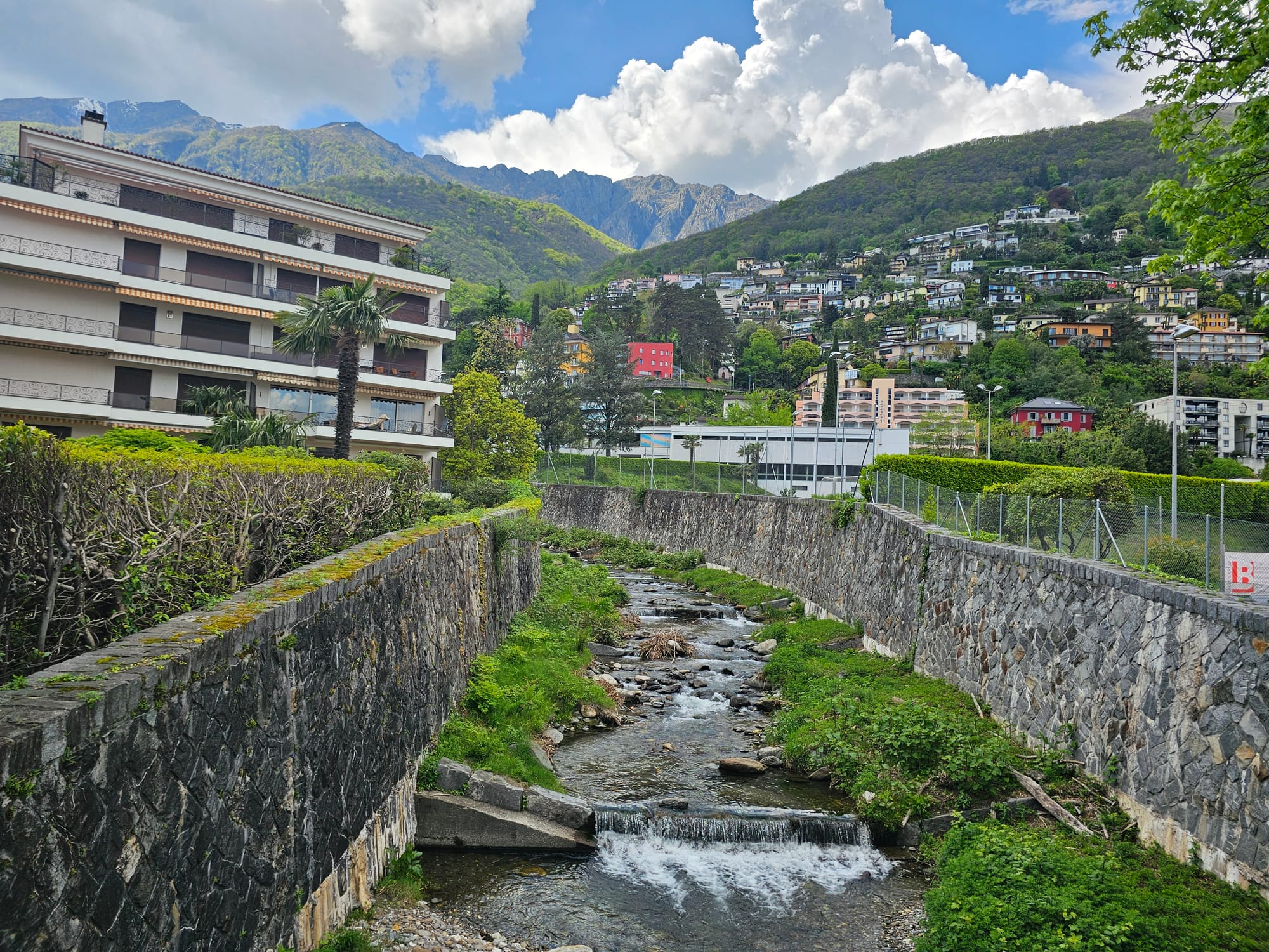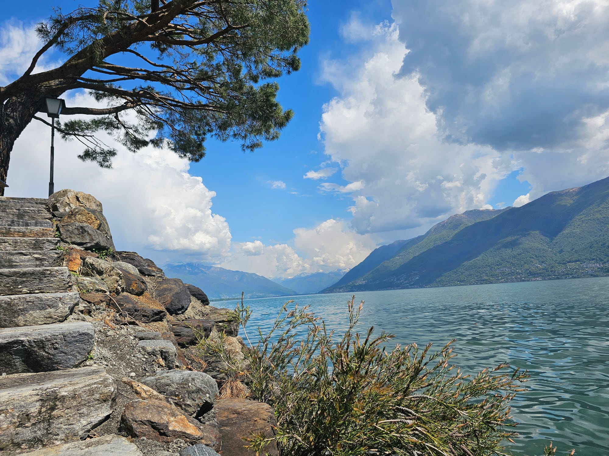 Доехав до озера Маджоре (оно только частично швейцарское, большая его часть расположена в Италии), я не сразу свернула к кемпингу, а сперва доехала до Бриссаго. Это небольшая деревня известна тем, что расположена на высоте 193 м н.у.м. и считается самым низкой точкой Швейцарии. Вообще говоря, все, что на озере имеет одинаковую высоту, но вроде как Бриссаго на несколько миллиметров ниже. Не знаю, как это работает.