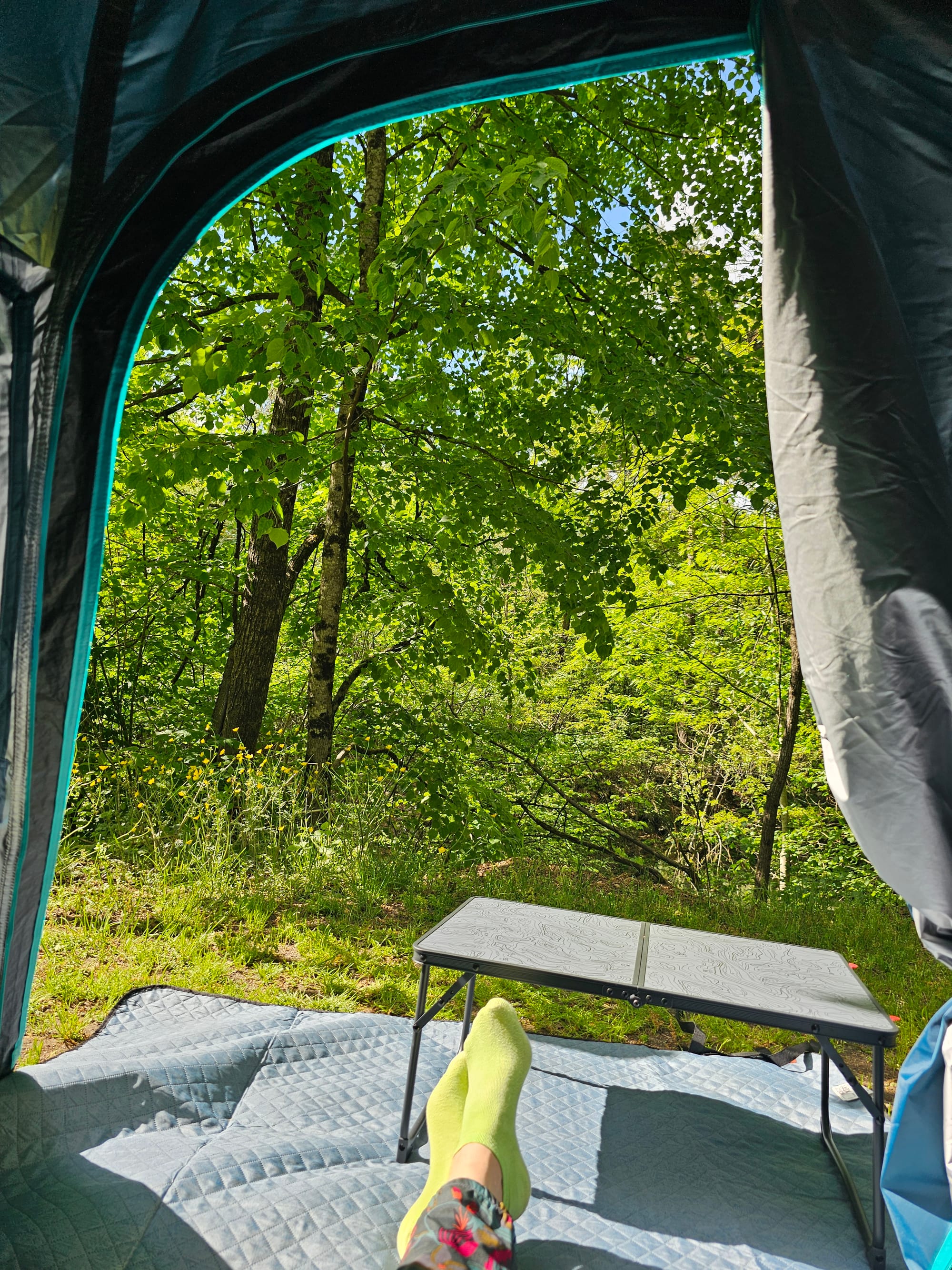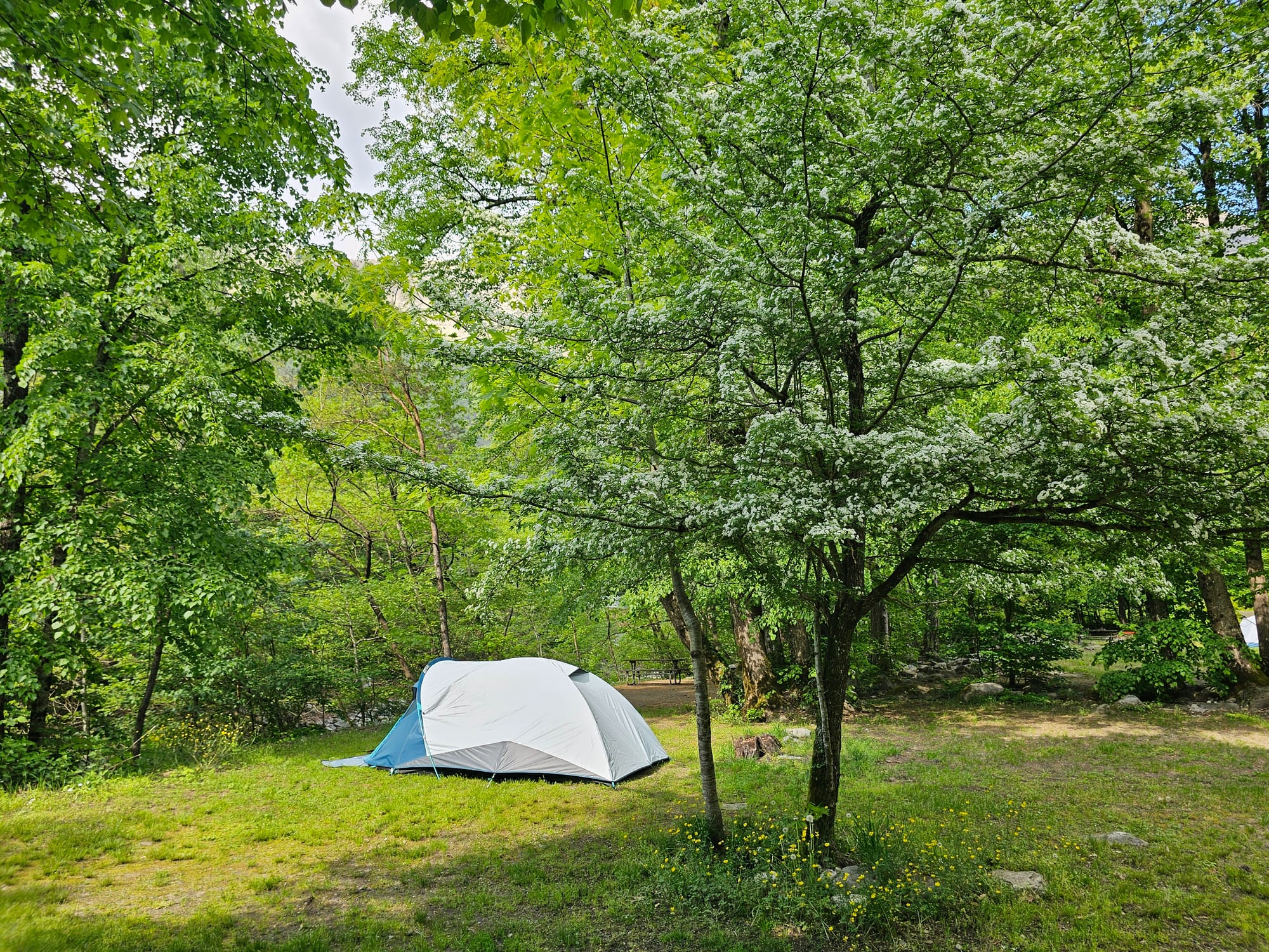 Кемпинг оказался чудесным. Очень приятный персонал, очень мало людей, мне выделили место прям у маленькой речки. Вечер я провела наслаждаясь шумом воды и пением птиц. Еще попробовала искупаться, но оказалось, что предупреждение, что вода в бассейне холодная, полностью соответствует истине, так что я очень быстро оттуда вылезла. 🥶 А перед сном вдруг сообразила, что кроме этой речки рядом с кемпингом должна быть еще речка побольше, и прогулялась до нее.