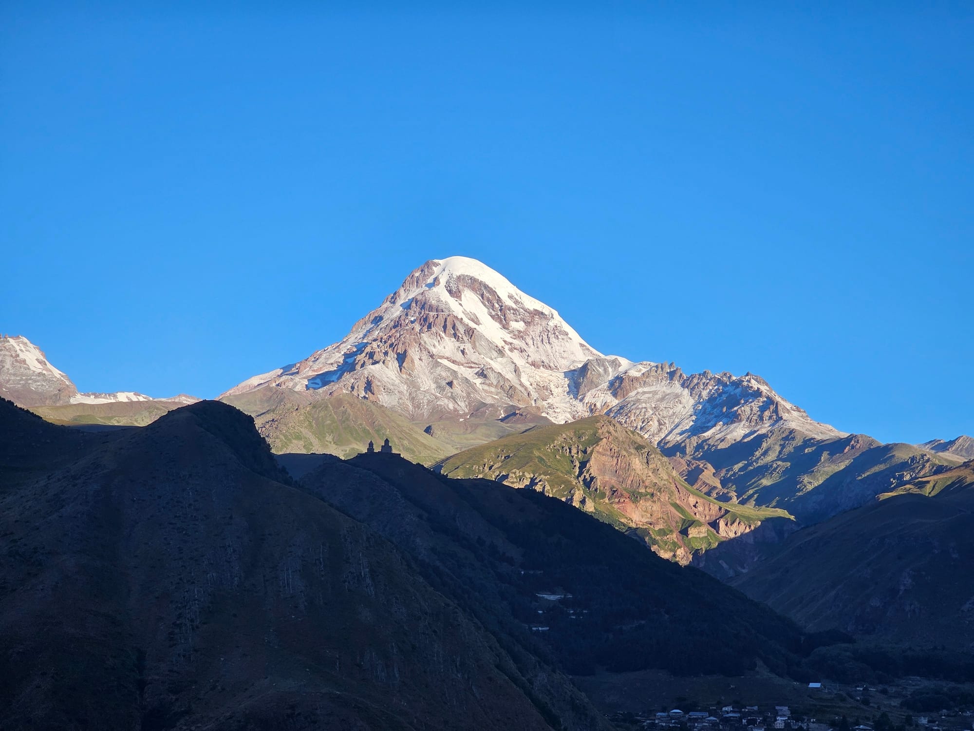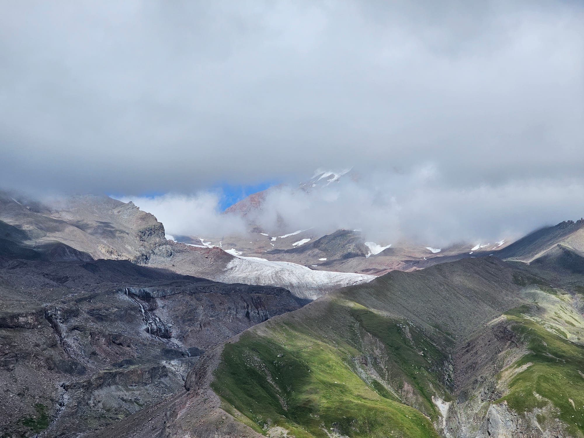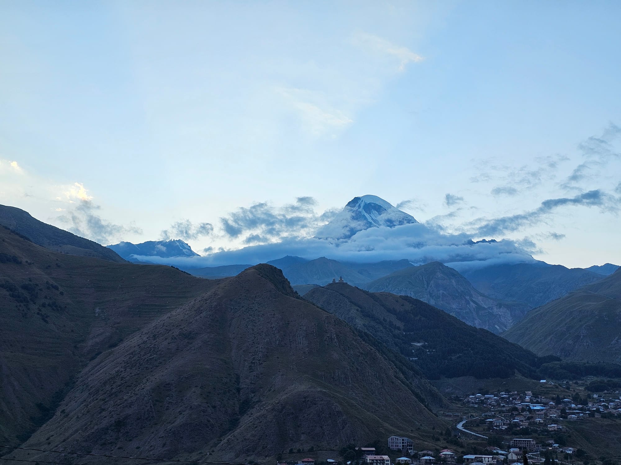 Вечером с террасы дома увидели, что Казбеги снова открылась, хотя и не полностью. Весь следующий день было ясно, и гора была полностью без облаков. Надеюсь, что все поднимающиеся на гору в тот день, дошли до своей цели. А нам хватило хайка до ледника, это было очень клево.