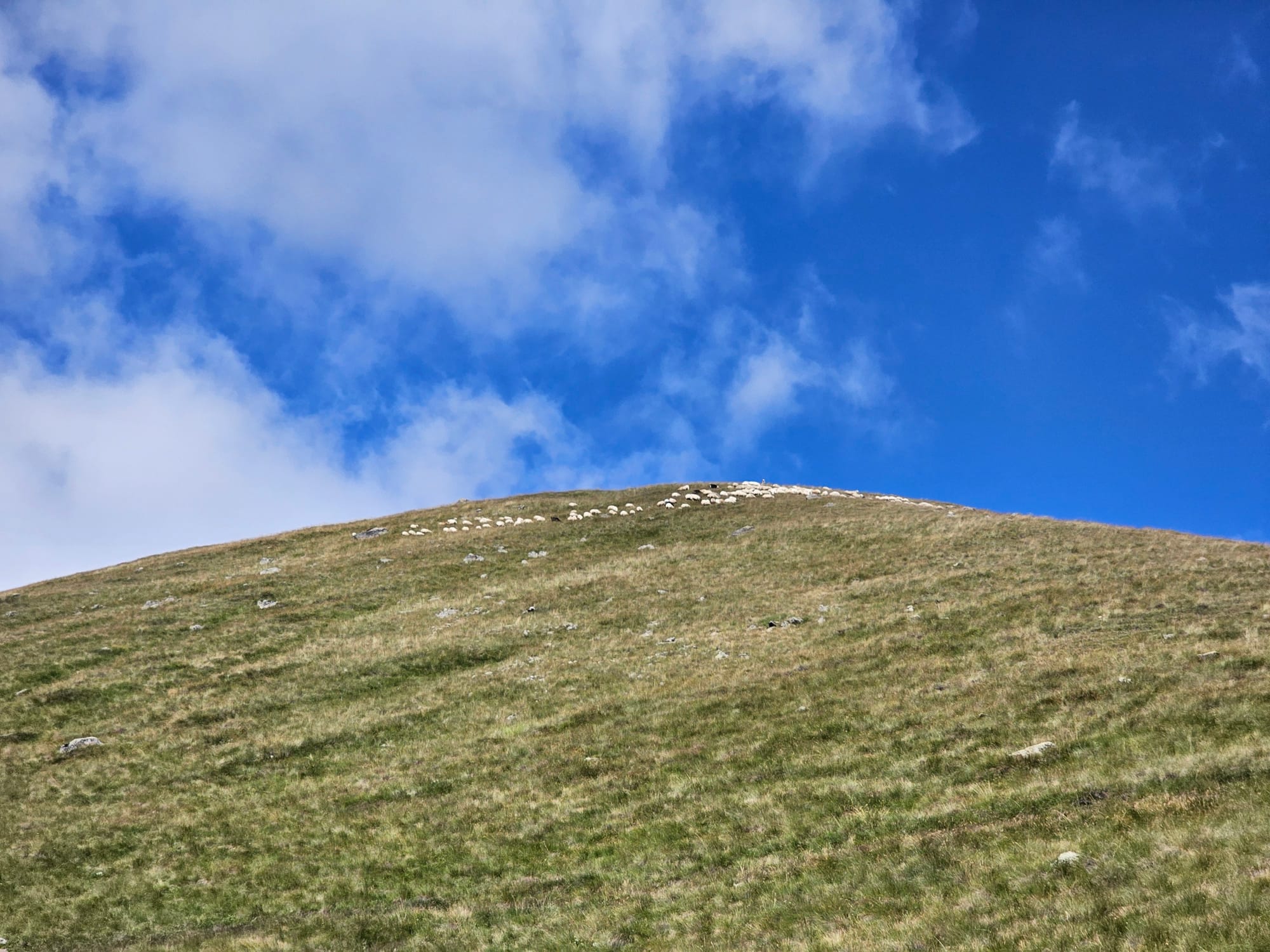 В какой-то момент мы увидели стадо овец с, как нам показалось, пастушьими собаками. К счастью, оно было достаточно далеко, так что мы решили пока об этом не беспокоиться. Да, они как раз тусили где-то там, где мы должны были идти обратно, но мы решили подумать об этом позже.