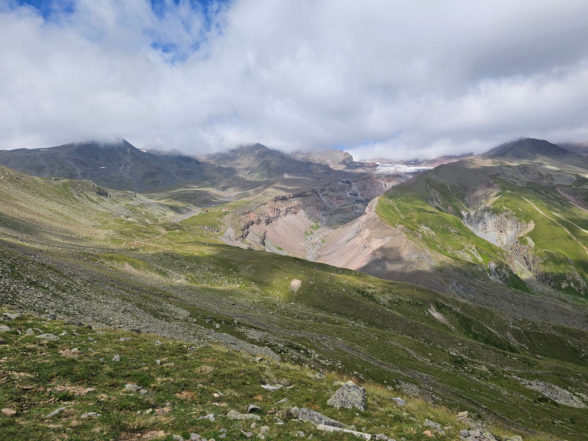Как мы поняли, эти два дня были самые солнечные, в следующий день вообще ожидалась шикарная погода, поэтому именно сейчас все желающие подняться на Казбек шли до хижин, чтобы на следующий день штурмовать вершину. Нам было интересно немного подглянуть в этот мир.