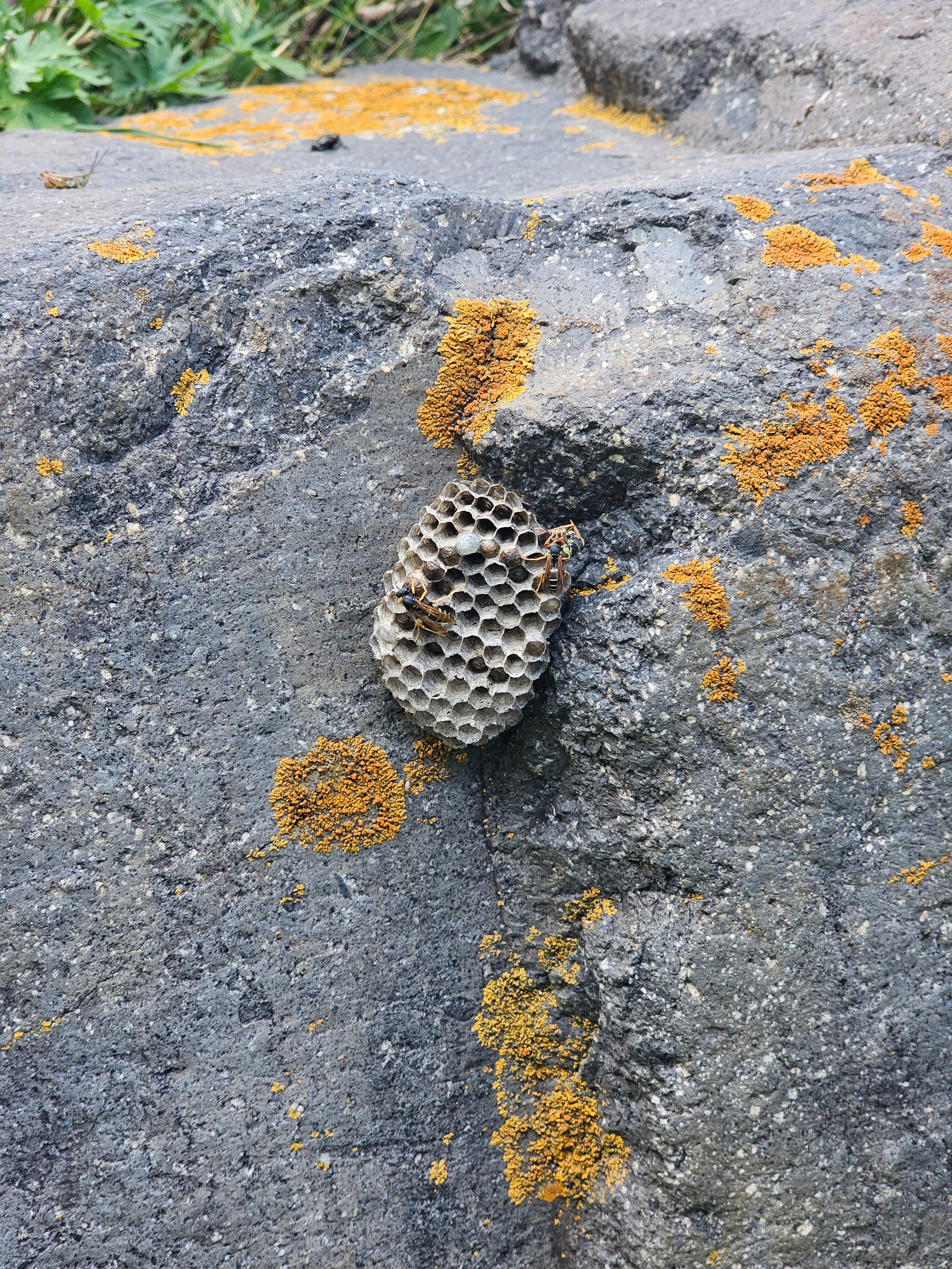 На обратном пути на камне у ручья мы нашли небольшое гнездо бумажных ос. Было слегка стремно, так что я быстро его сфоткала и мы ушли подальше.