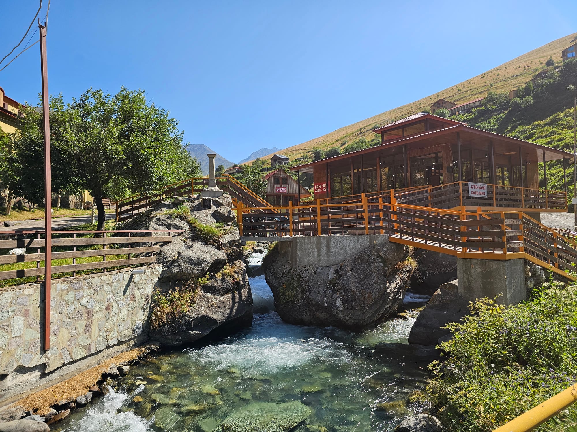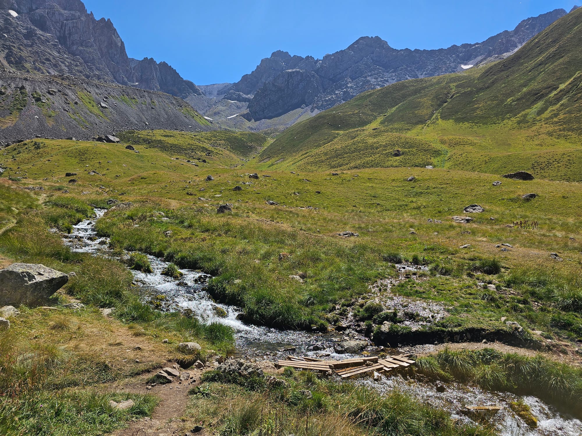 В дальней части долины нам тоже надо было пересечь речку, но там она была совсем узенькая, и с небольшим... мостиком, если это можно так назвать.