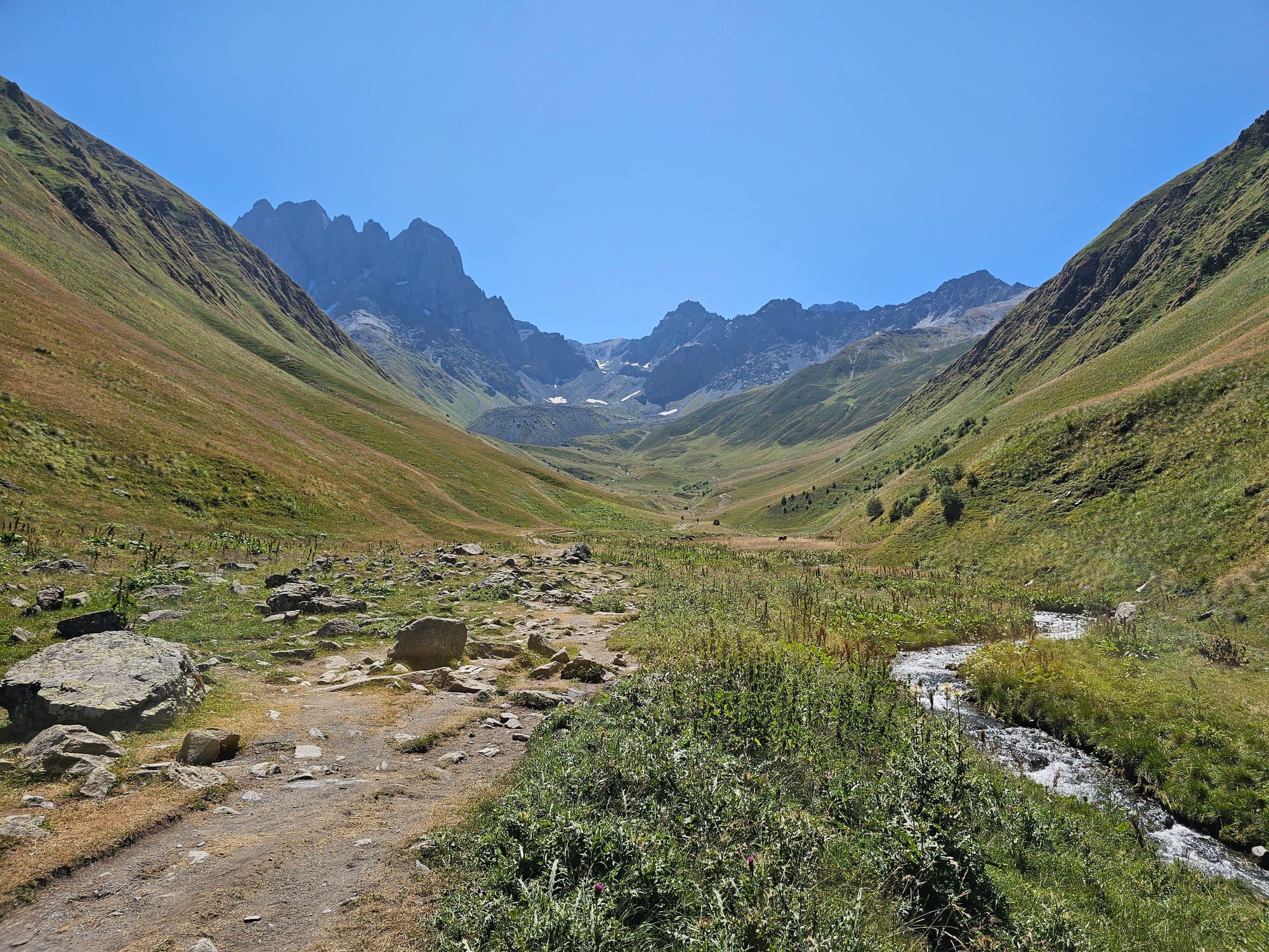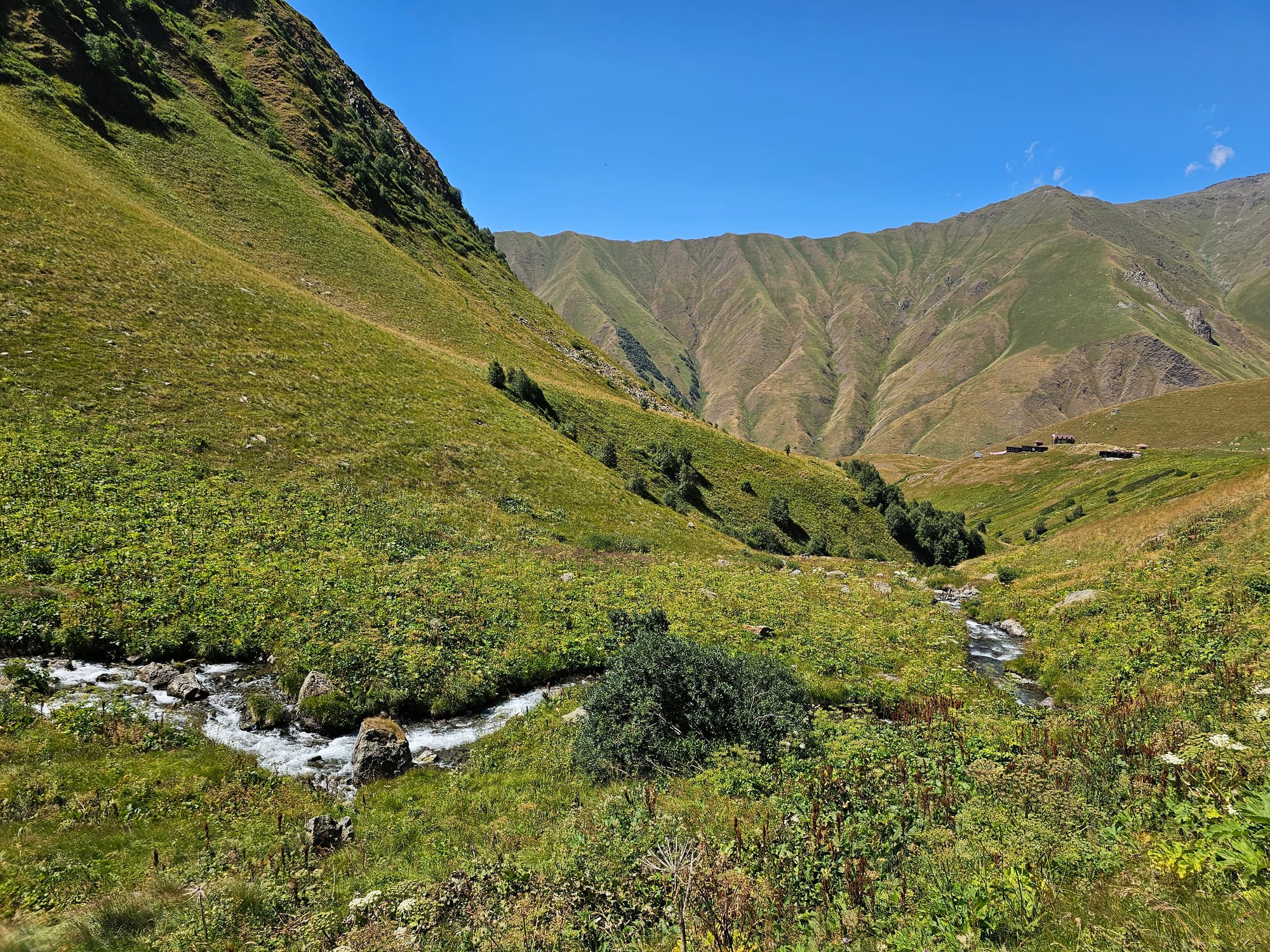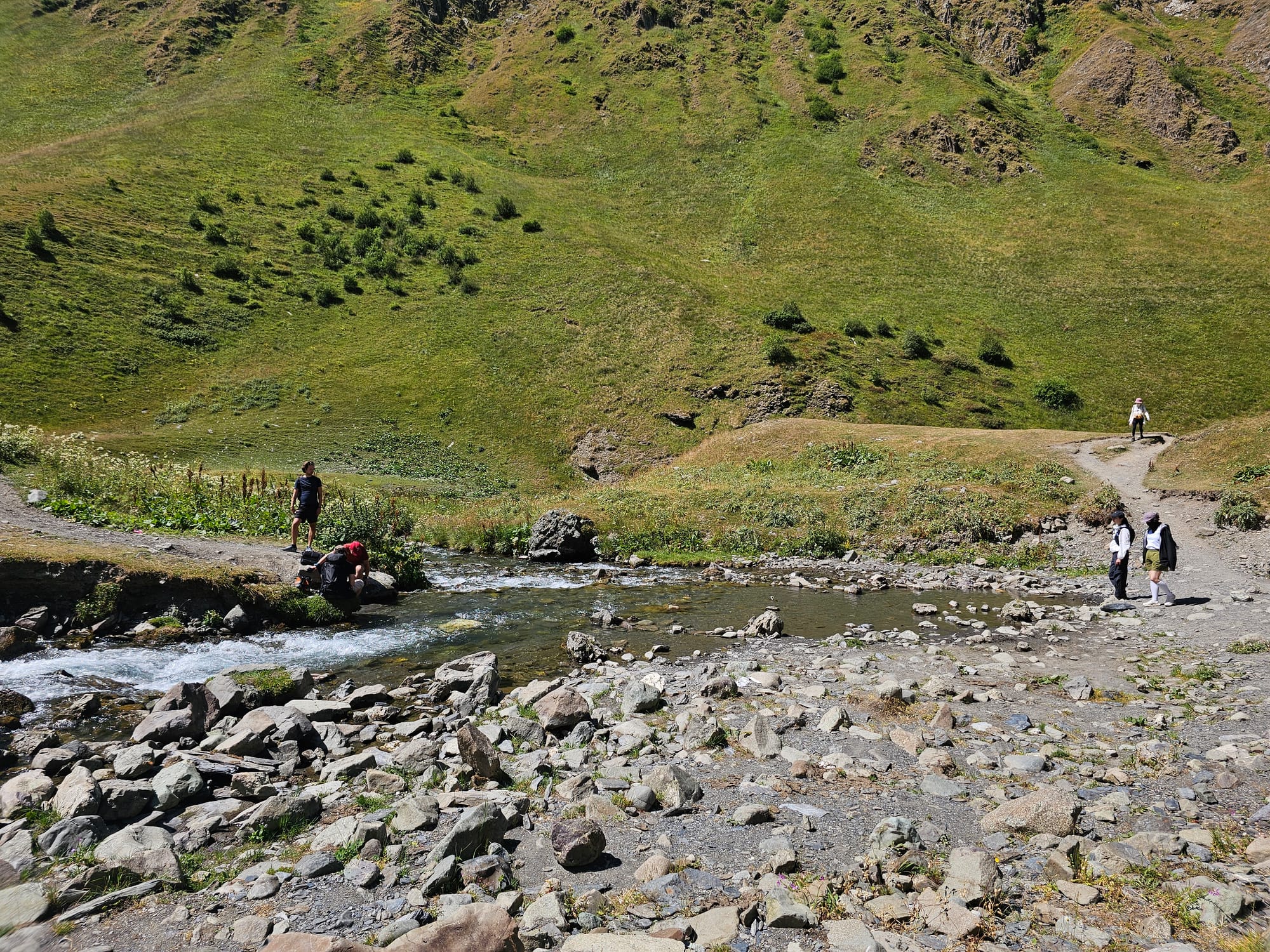 В середине тропа раздваивалась. Можно было идти дальше вдоль реки, а можно было пересечь реку и пойти по противоположной стороне долины. Мы решили, что пересекать будем на обратном пути.