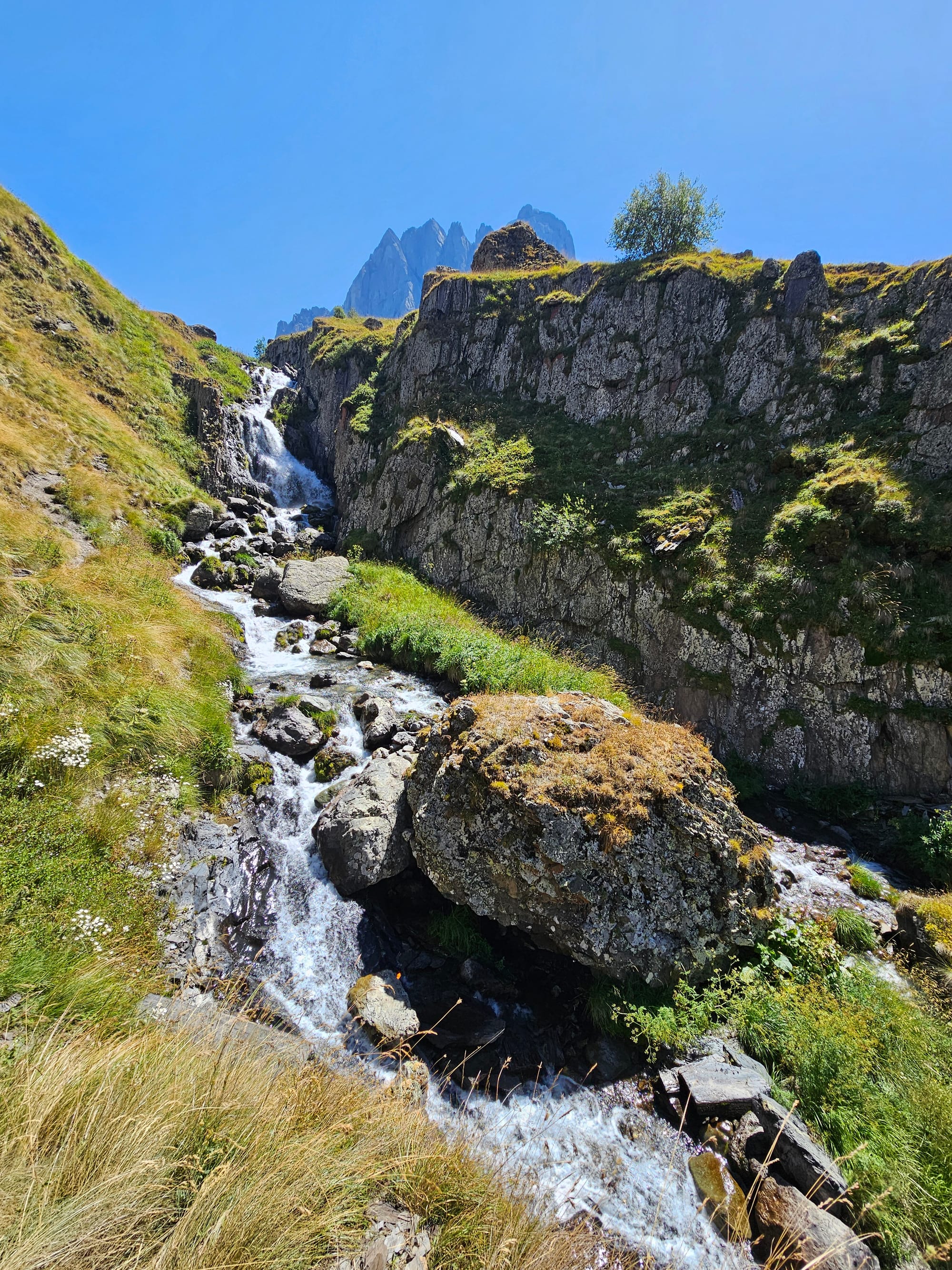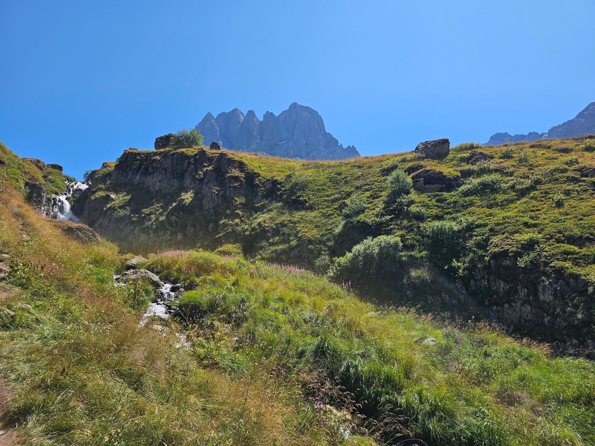 Долина Джуто тоже стала одним из первых найденных мест в округе. Но добраться туда оказалось совсем непросто. 3 года назад там сошел оползень, и дорога до долины и одноименной деревни была частично разрушена. Пройти там можно, но ездить нельзя. Поэтому трансфер довозит только до участка с оползнем, дальше надо кусок пройти пешком, а дальше стоят местные, готовые подвезти оставшийся до деревни кусок. Но это все удлиняет и усложняет дорогу, поэтому чтобы пройти красивый маршрут на горный хребет, нужно ехать туда с ночевкой. Мы решили, что не будем этого делать, просто пройдем нижнюю часть до водопадов и озер. По всем отзывам это тоже было очень красиво.