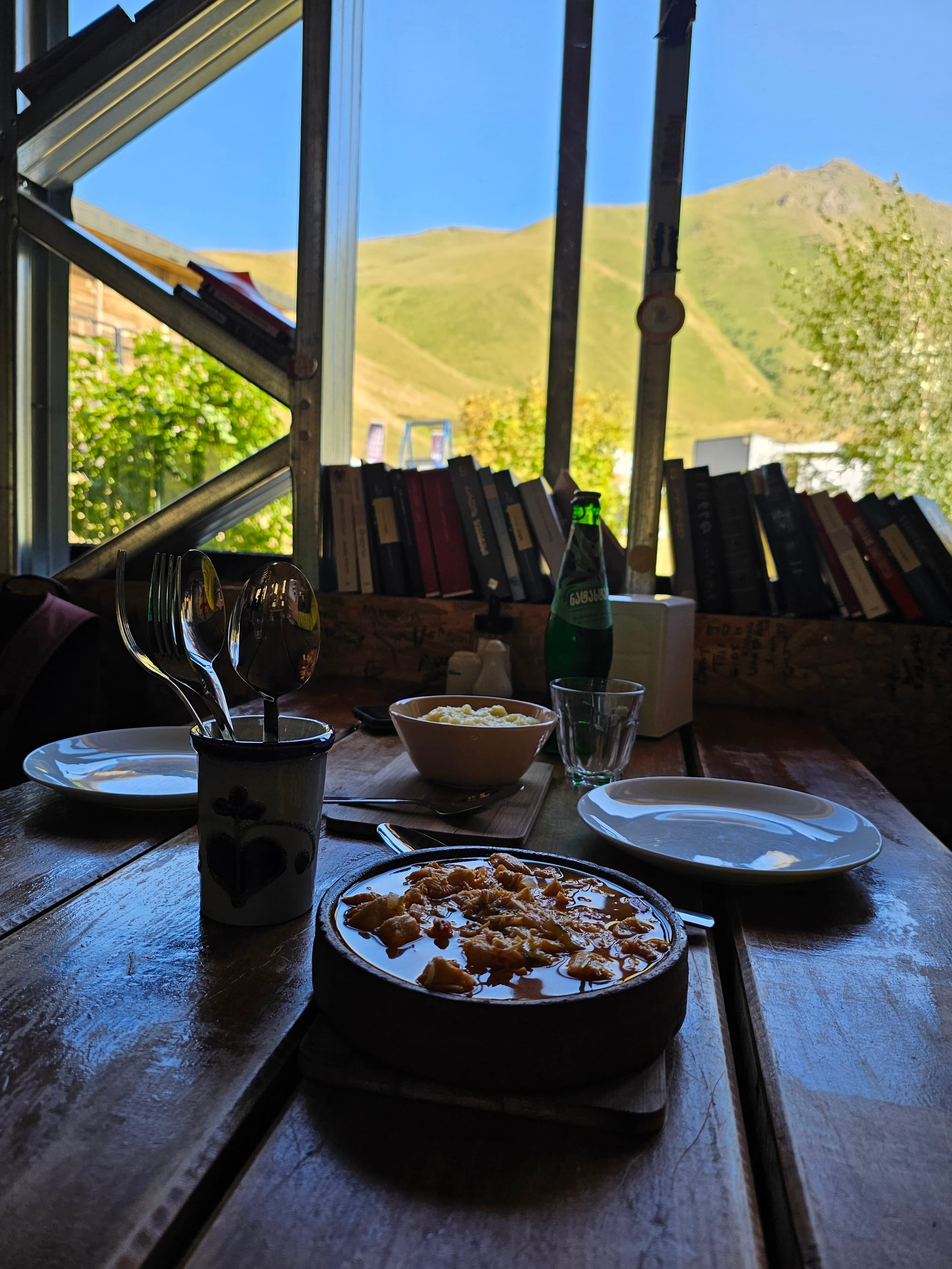 Дойдя до деревни мы засели в еще одной кафешке. Времени до обратного трасфера было еще много, а идти осталось совсем чуть-чуть. Тоже было очень уютно, но выпечка не особо впечатлила.