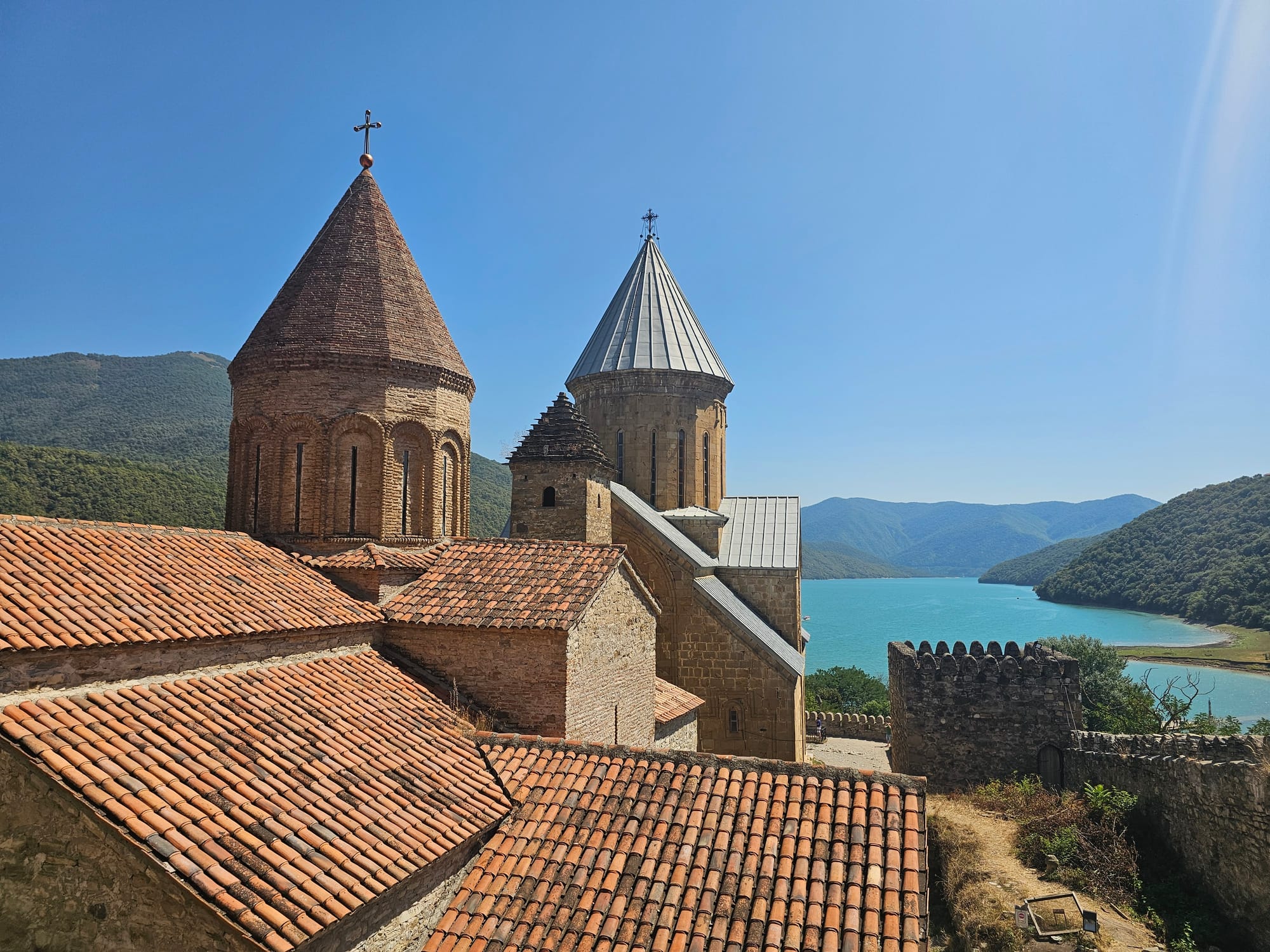 Это был наш последний хайк и день в Степанцминде. На следующий день у нас был заказан трансфер в Тбилиси. Все мелкие интересные остановки мы сделали по пути туда, на обратную дорогу у нас остался только заезд к крепости Анананури. Она оказалась гораздо круче, чем мы ожидали. Но поскольку она не очень далеко от Тбилиси, людей там тоже было ОЧЕНЬ много.
