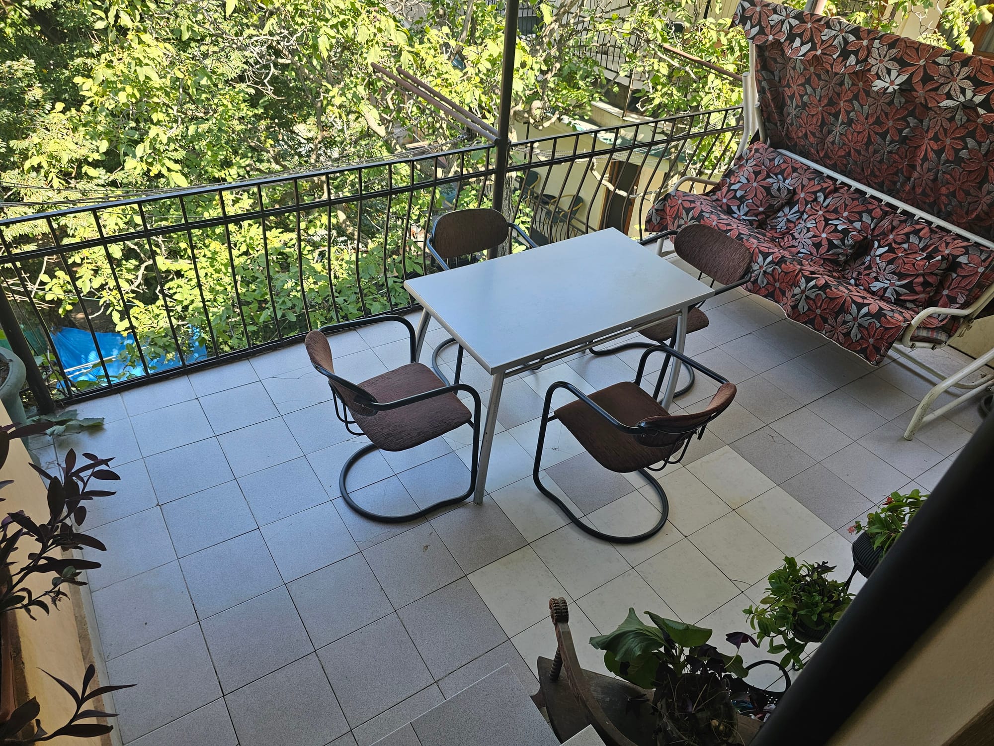 Ванная комната при комнате была своя, а вот кухня общая (на три комнаты, так что проблем не вызывало). Завтракали и ужинали мы часто на этом балконе. И вроде бы соседние дома совсем рядом, но из-за зелени создавалось впечатление, что никого другого рядом нет.
