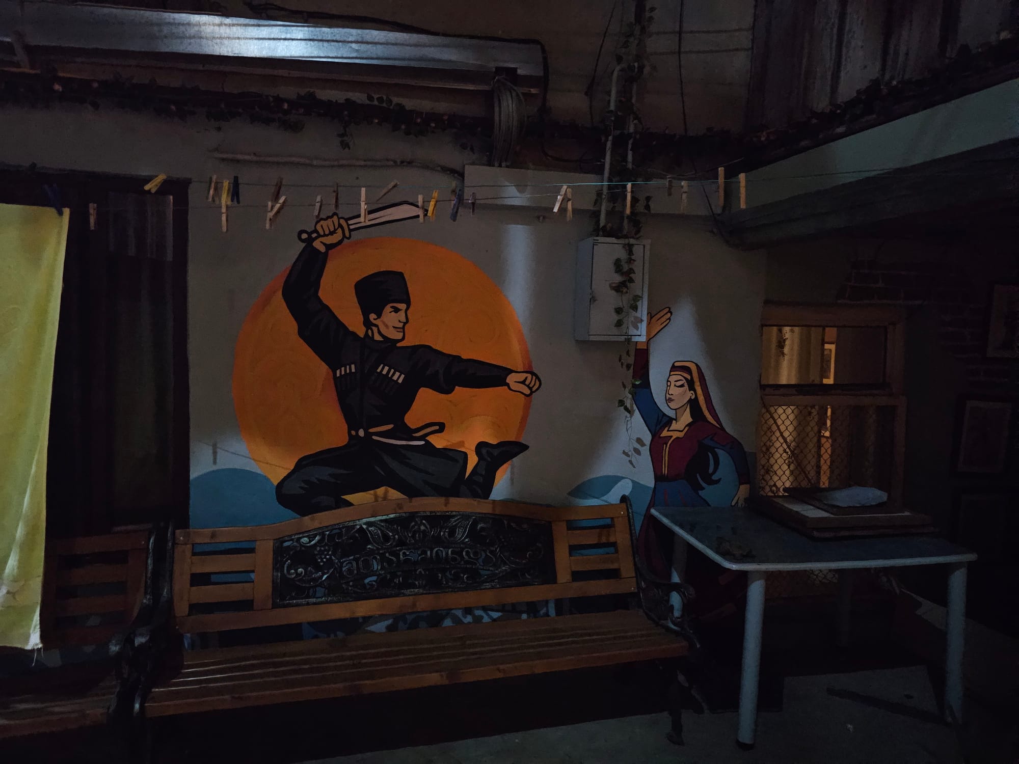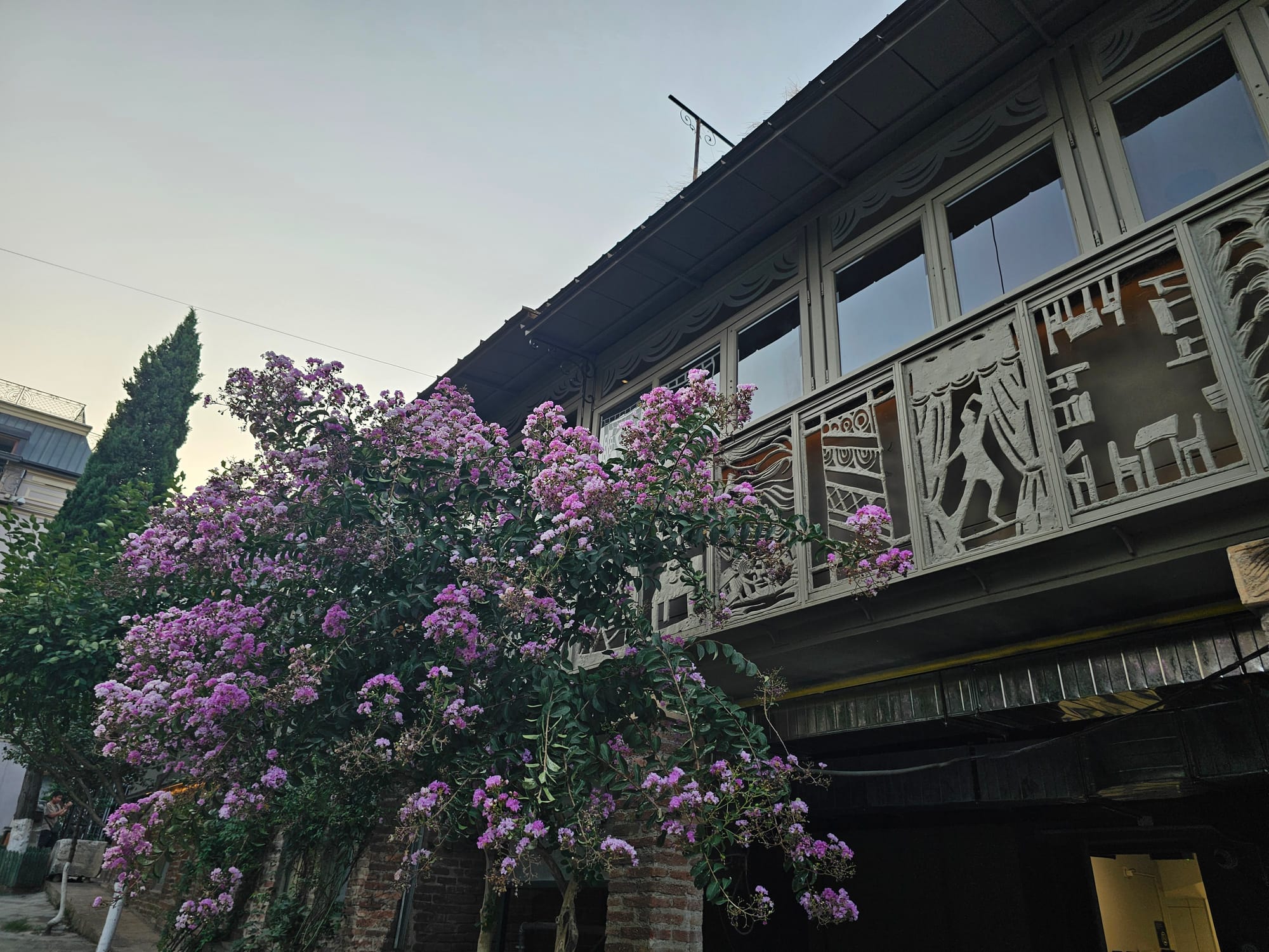 В Тбилиси мы заселились в очень уютный отель. На самом деле это огромная квартира, в которой на первом этаже живут хозяева, а комнаты на втором этаже сдаются. Нам с первого взгляда понравилось это место, но напрягало большое количество ковров (с моей аллергией на пыль — ковры прям зло). Но мы связались с хозяйкой, и к нашему приезду убрали все ковры из комнаты — кайф!
