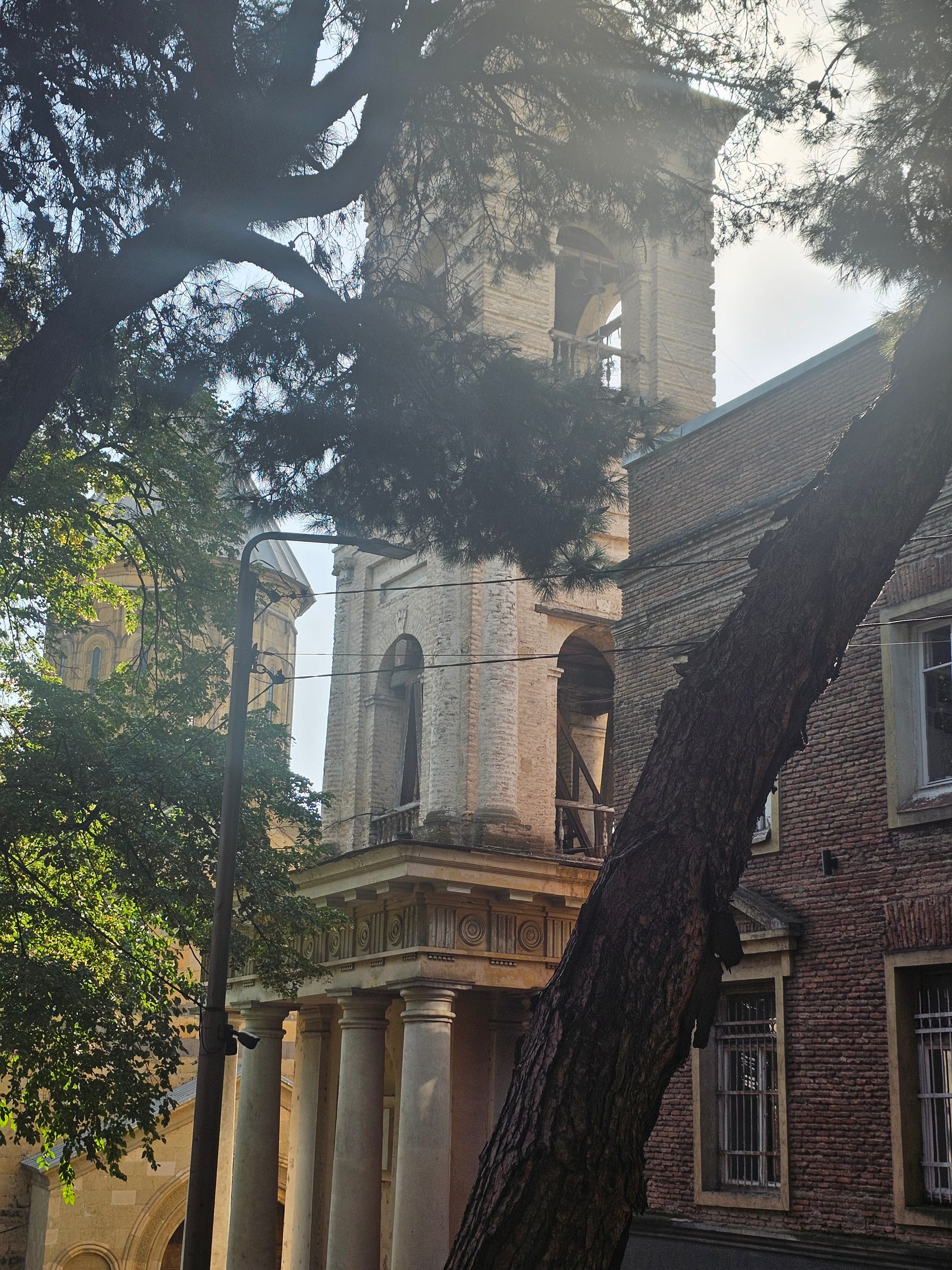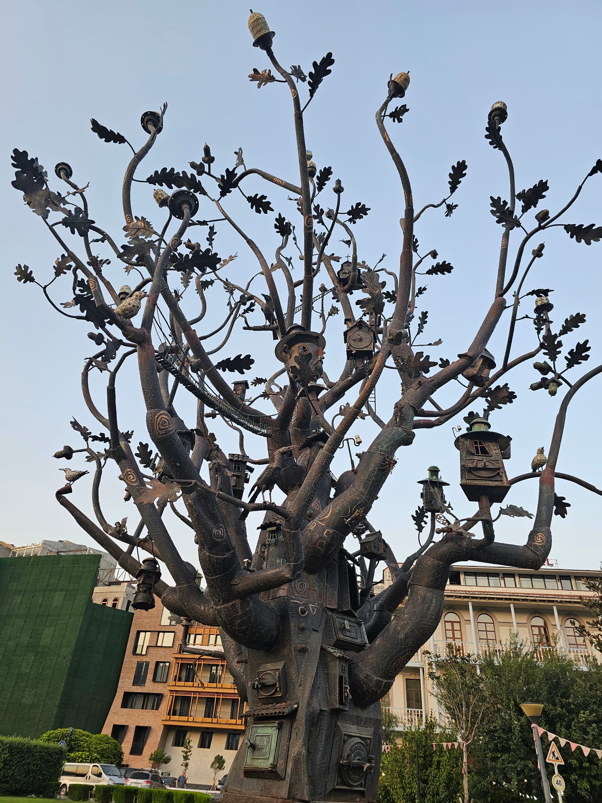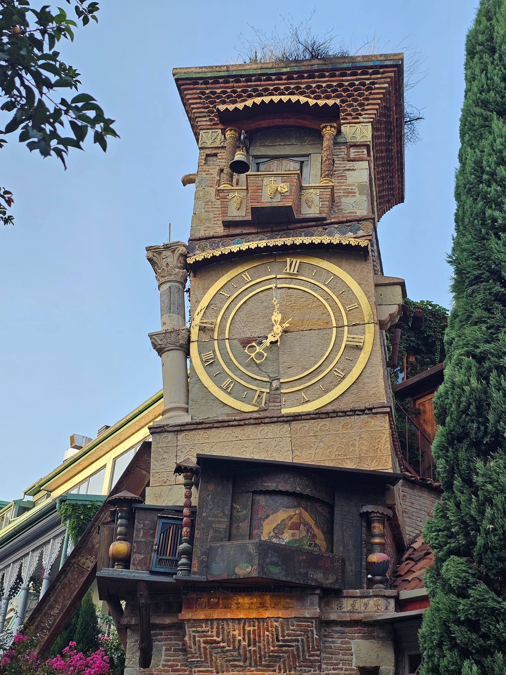 Вечером этого дня мы дошли до башни с часами, которую я не посмотрела в прошлую поездку в Тбилиси, потому что не знала про них. Пришли как раз вовремя, совсем немного пришлось ждать.