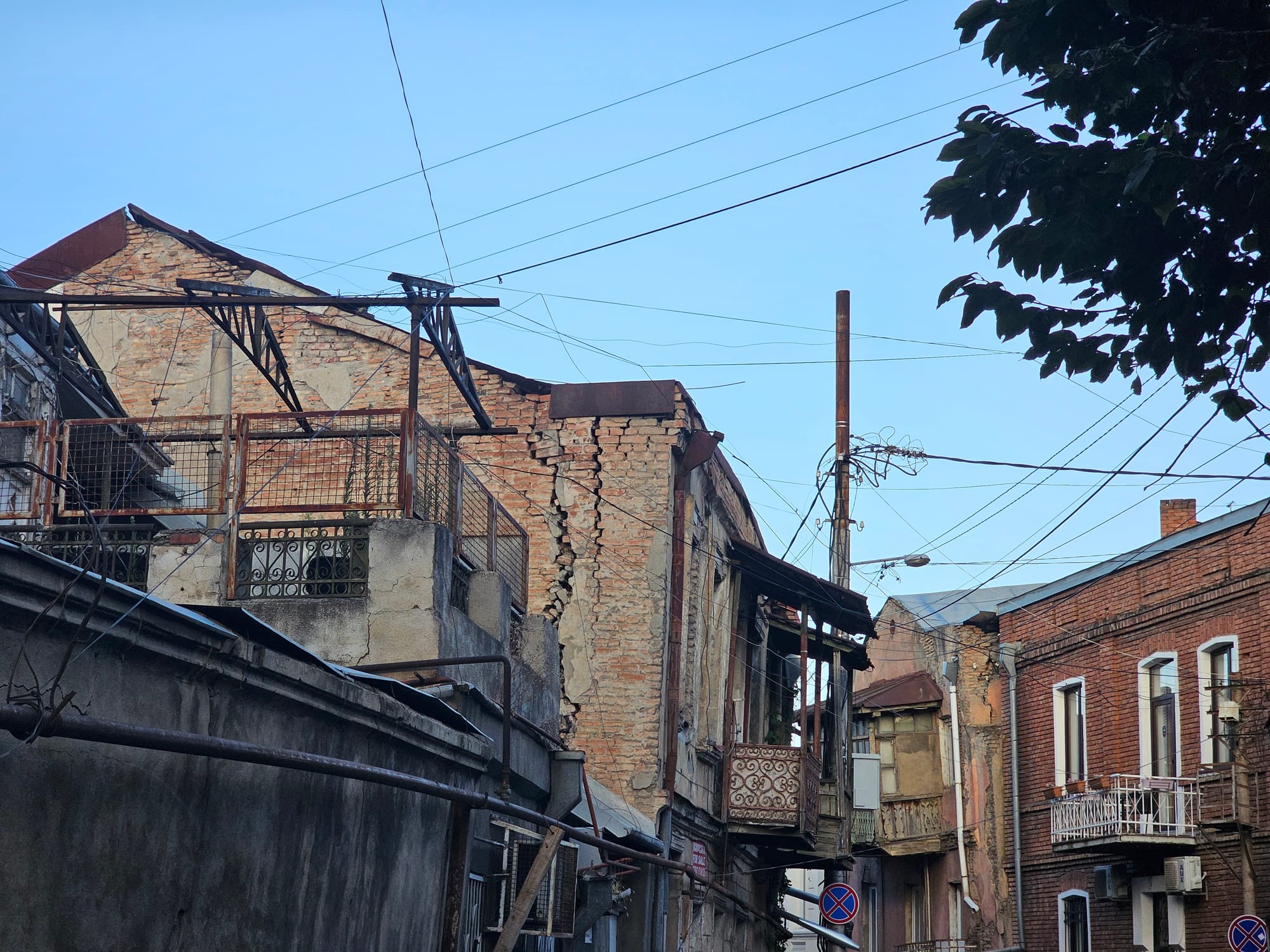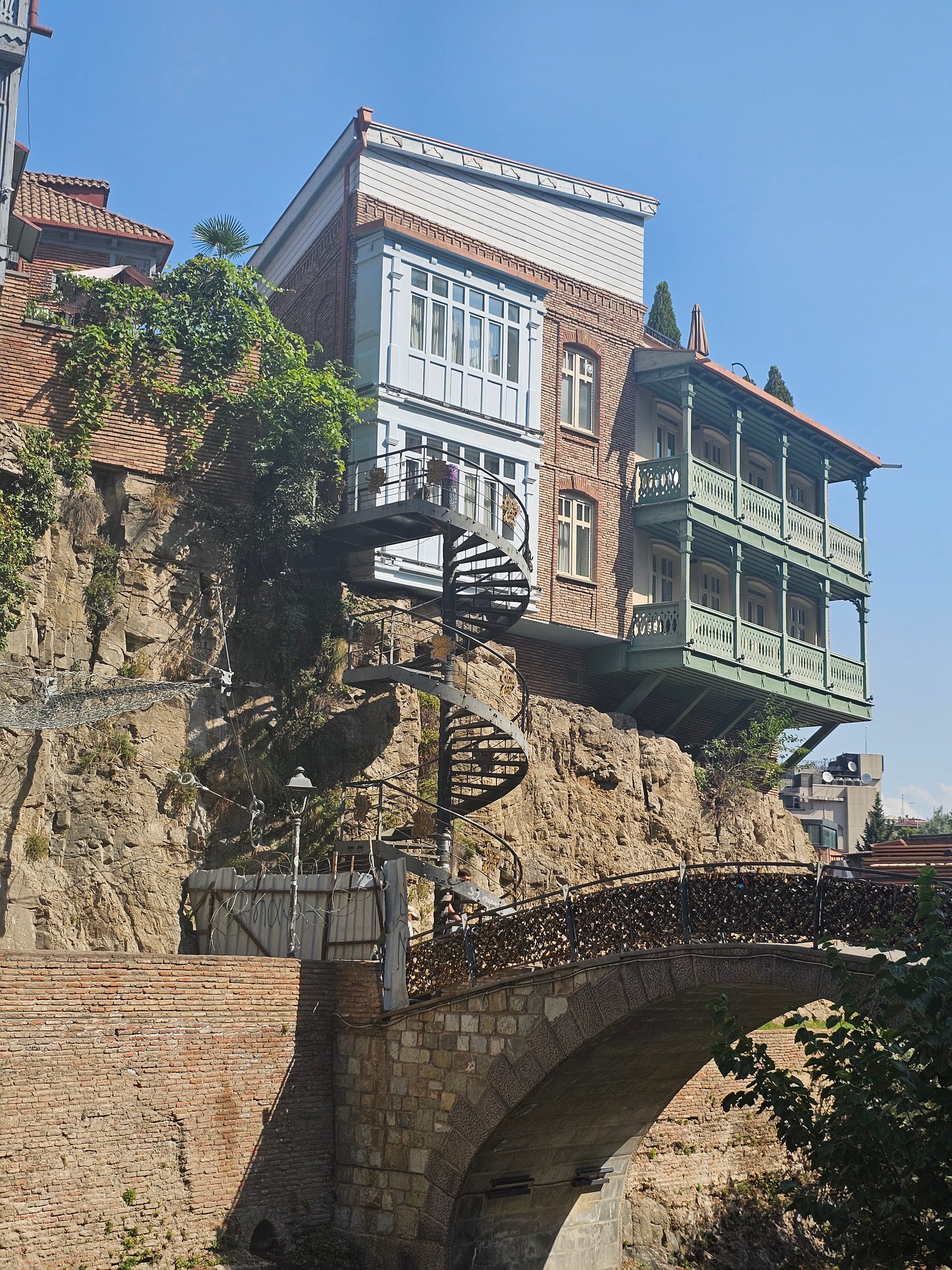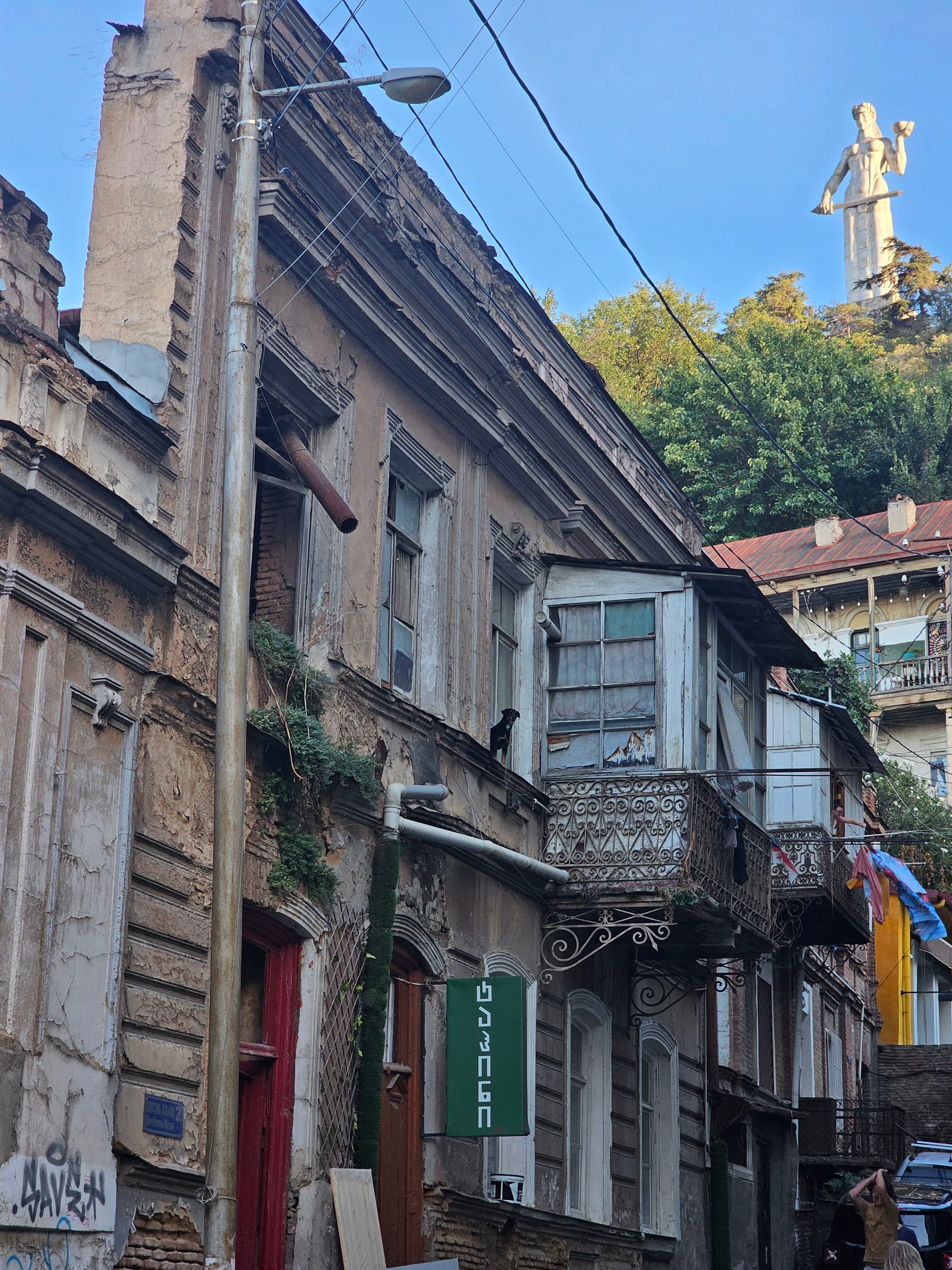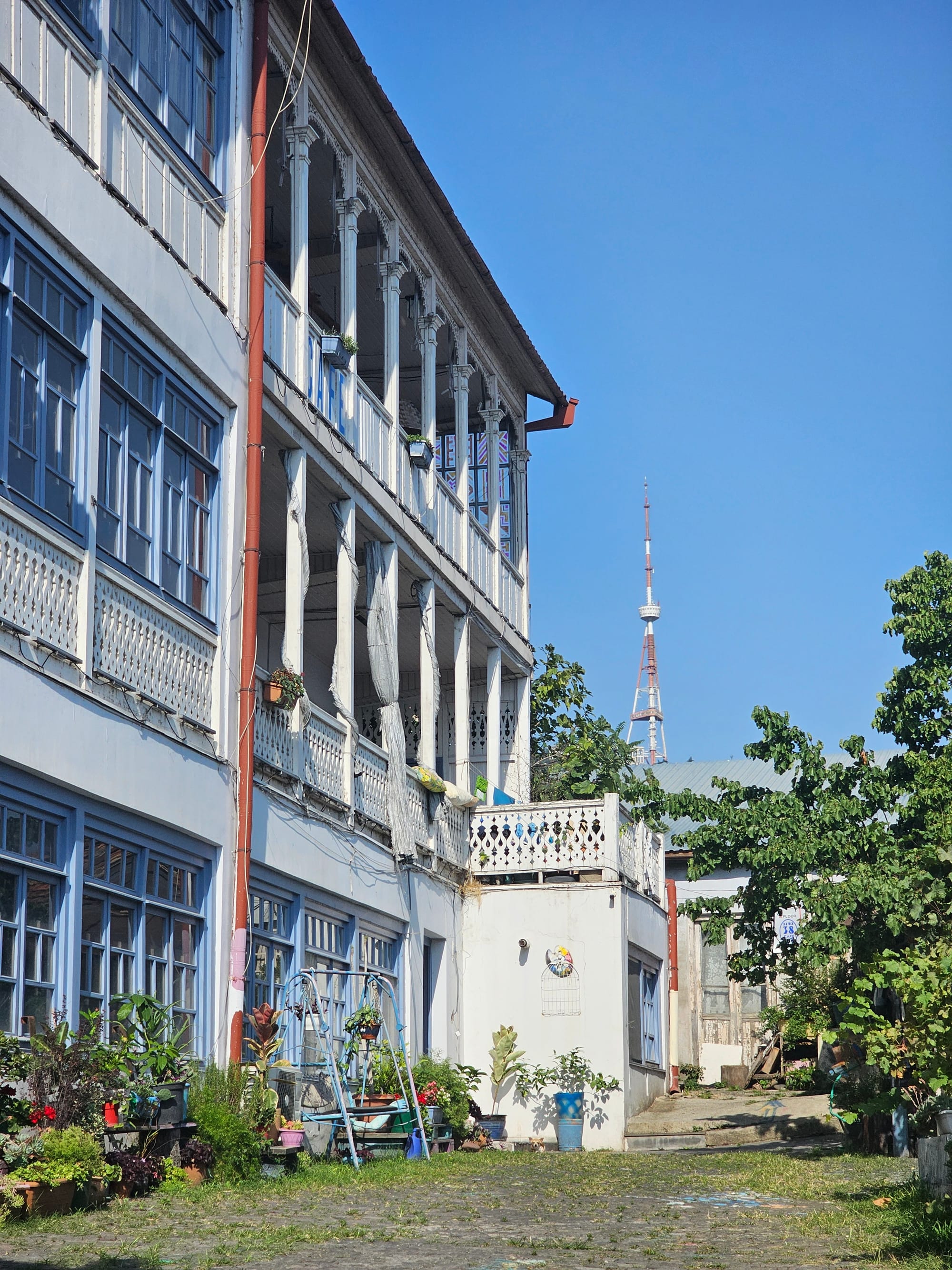 В центре мы сразу же пошли наверх, чтобы посмотреть на крыши и балкончики. Ну не нахайкались в Степанцминде, что с нас взять.