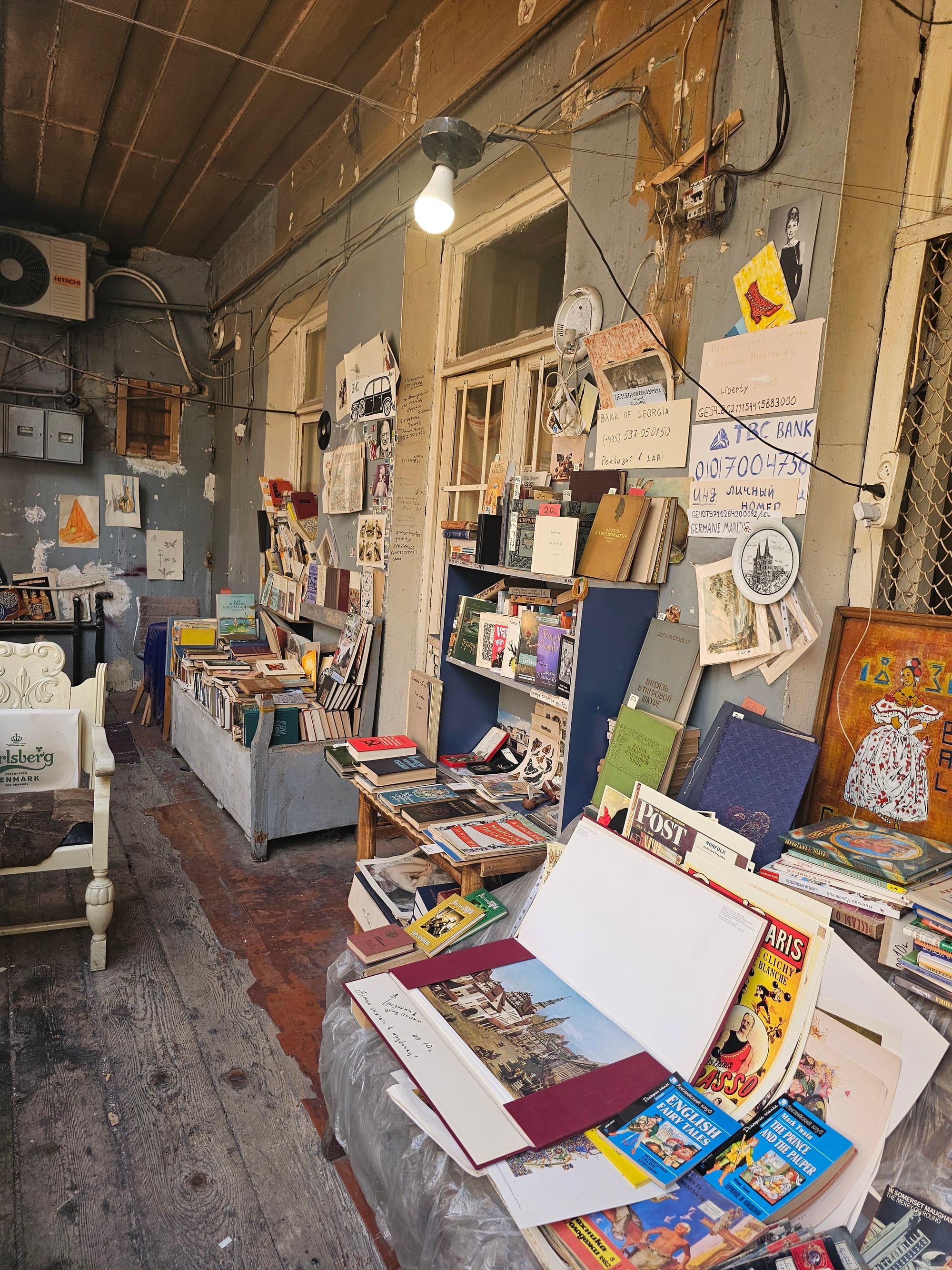 На одной из маленьких улочек был такой уличный магазинчик книжек, без продавца: берите, что хотите, оплачивайте или закидывая наличку, или переводом. В основном там были книги советских времен, много на русском.