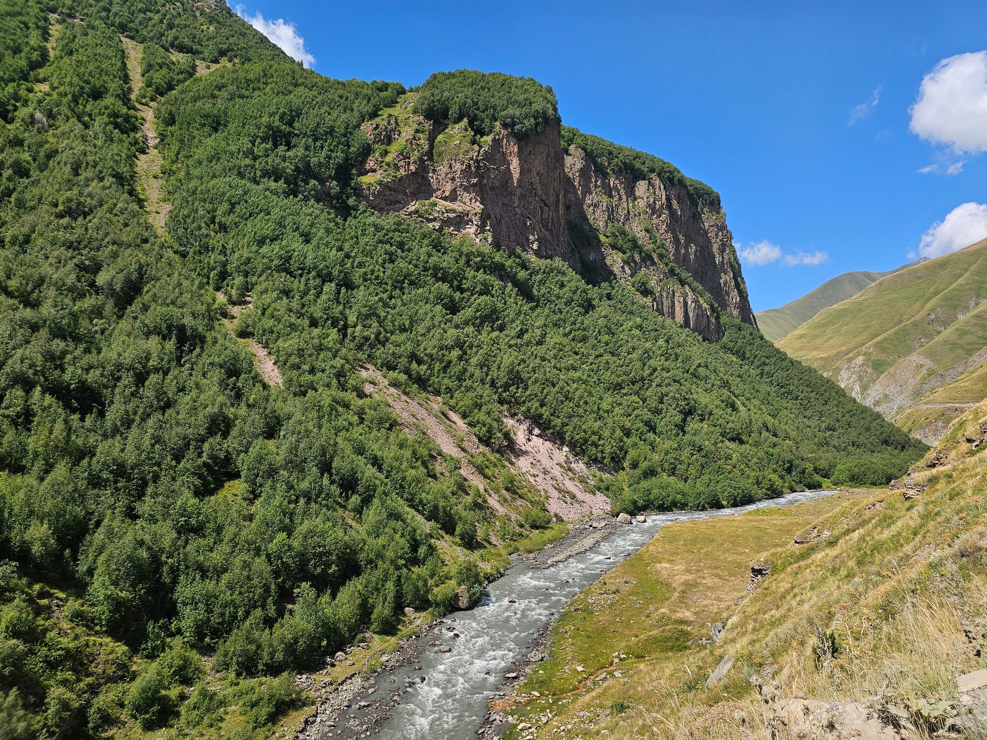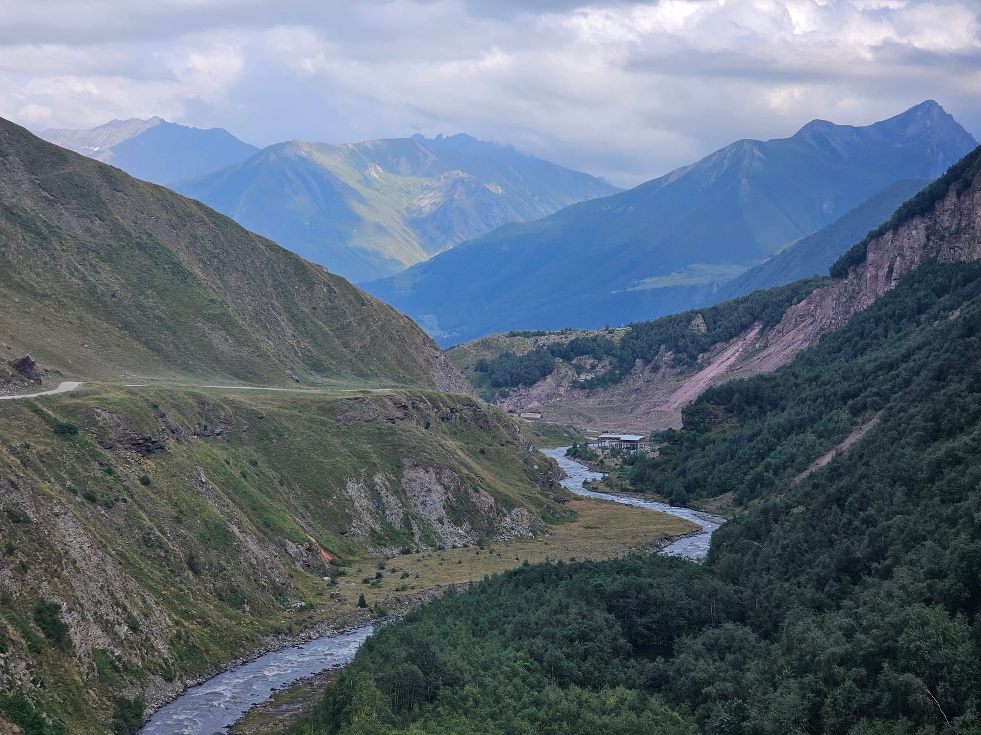 Потом мы поднялись еще выше, посмотрели на горы и реку чуть поближе.