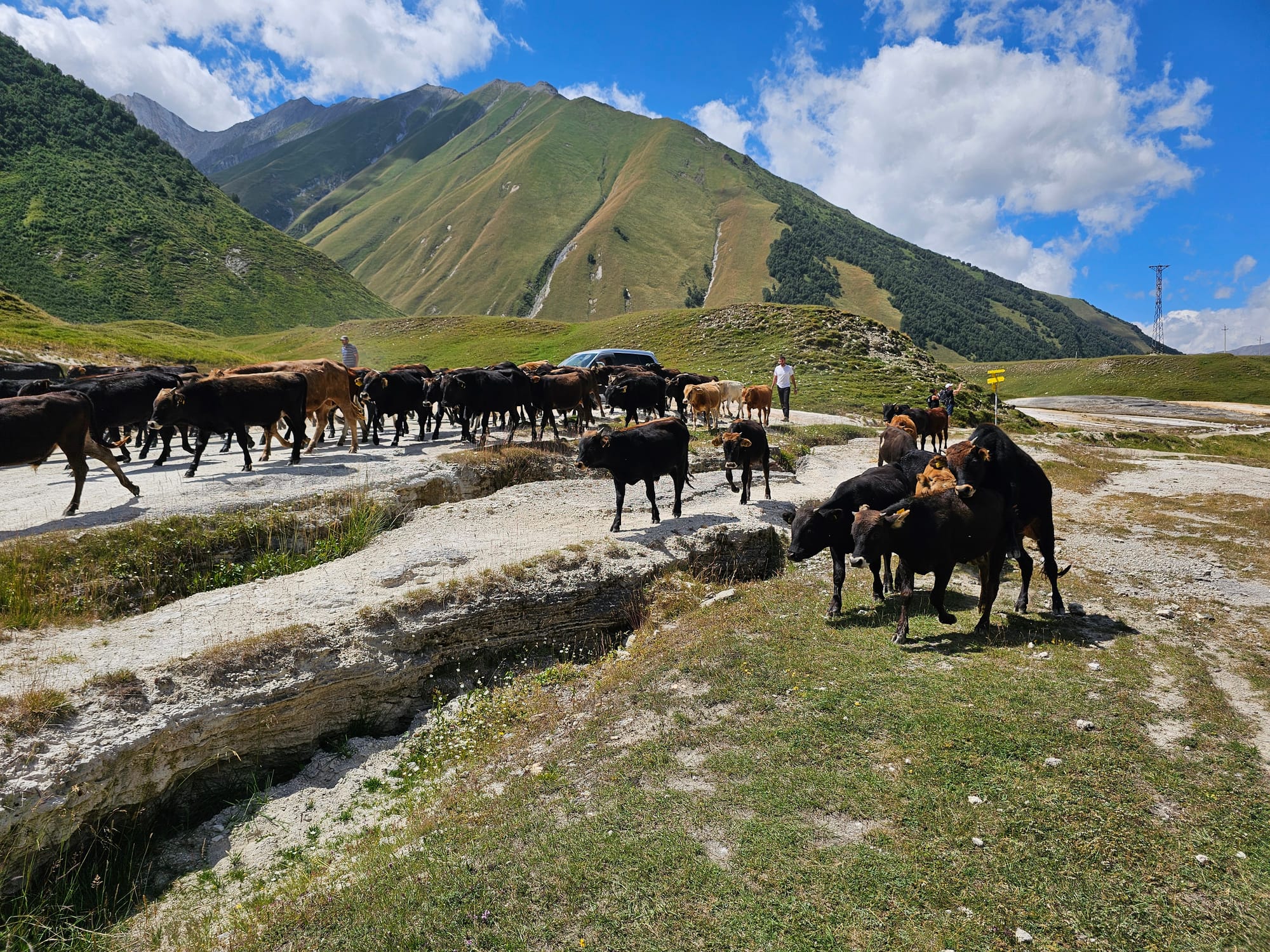 На подходе к долине пришлось разминуться со стадом коров, которые мало того, что не особо смотрели, куда идут и что на их пути мы, так еще и пытались размножаться прям на ходу.