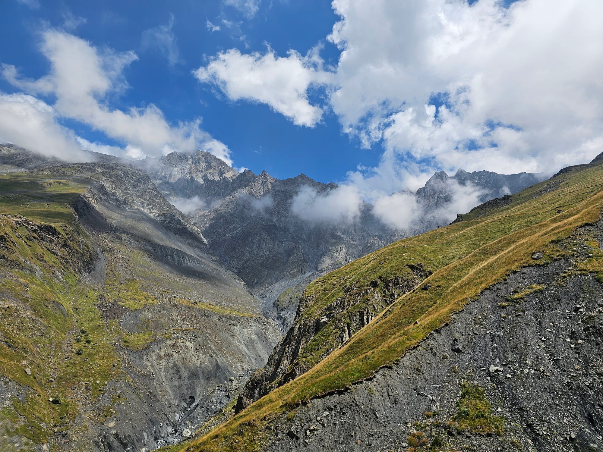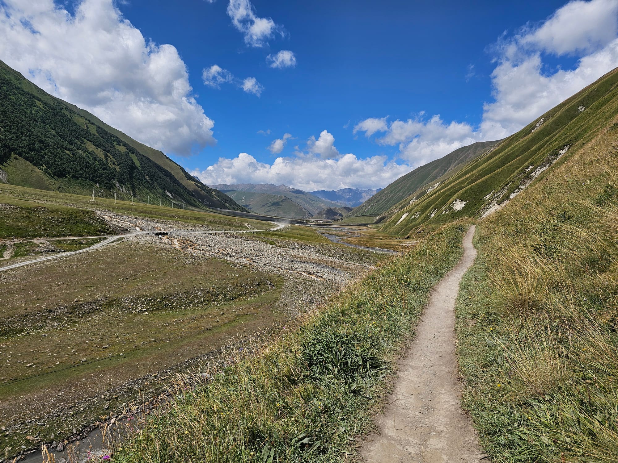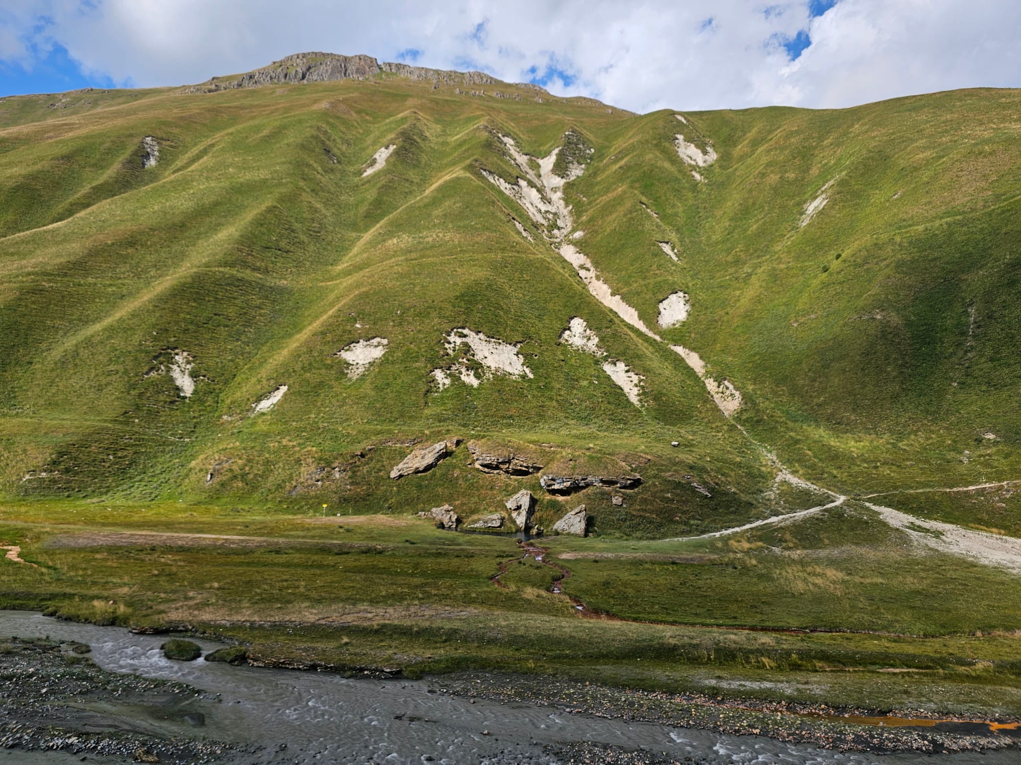 По самой долине было два пути с двух сторон реки: одна широкая плоская дорога, по которой иногда ездили машины местных, и узкая тропа по склону. Мы решили выбрать сперва узкую и более длинную тропу, чтобы, во-первых, лучше понимать, сколько нам нужно времени на возвращение обратно, во-вторых, чтобы посетить минеральный источник.