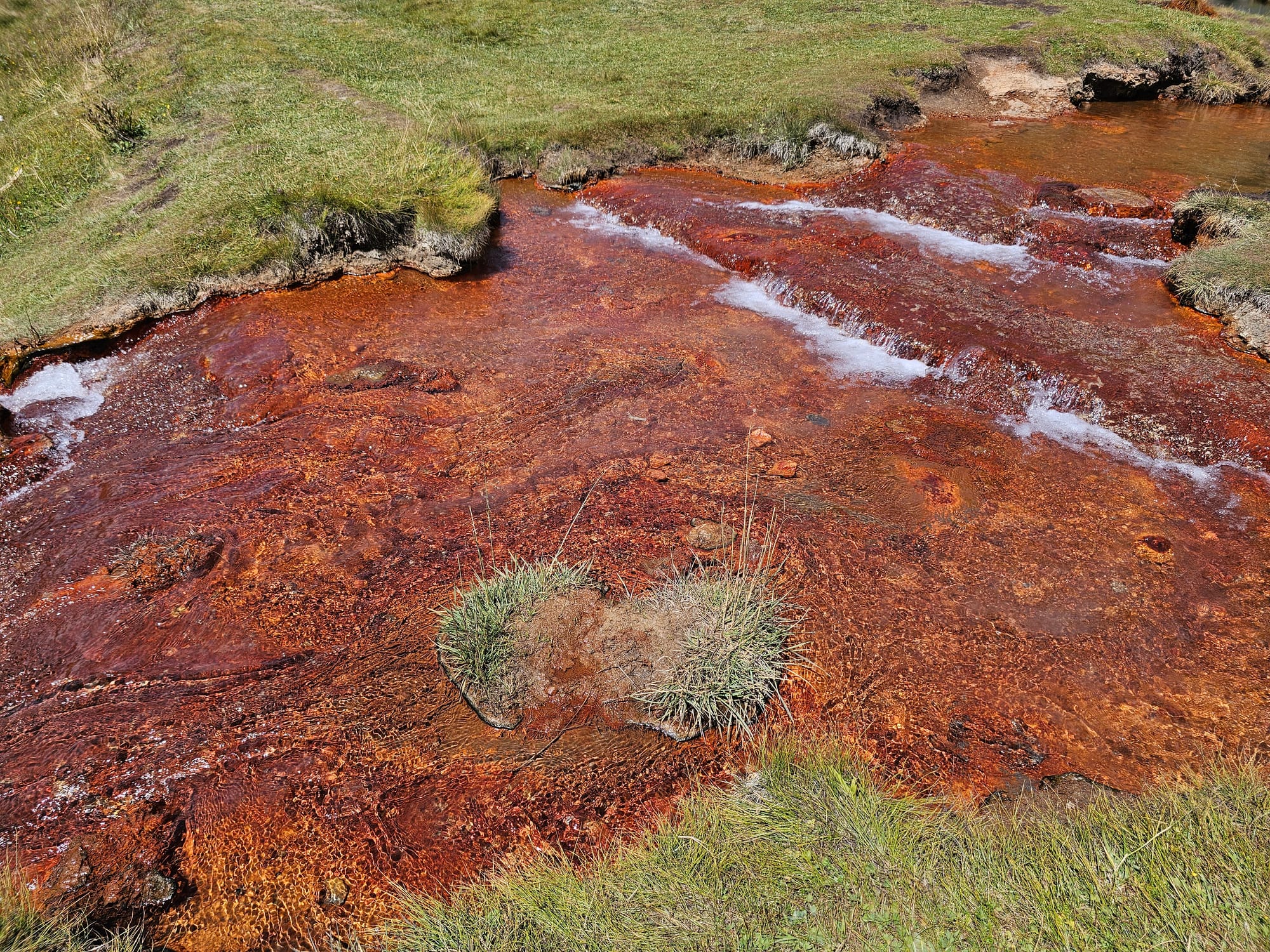 Минеральный источник мы увидели издалека — ярко-красная земля вокруг очень заметна.