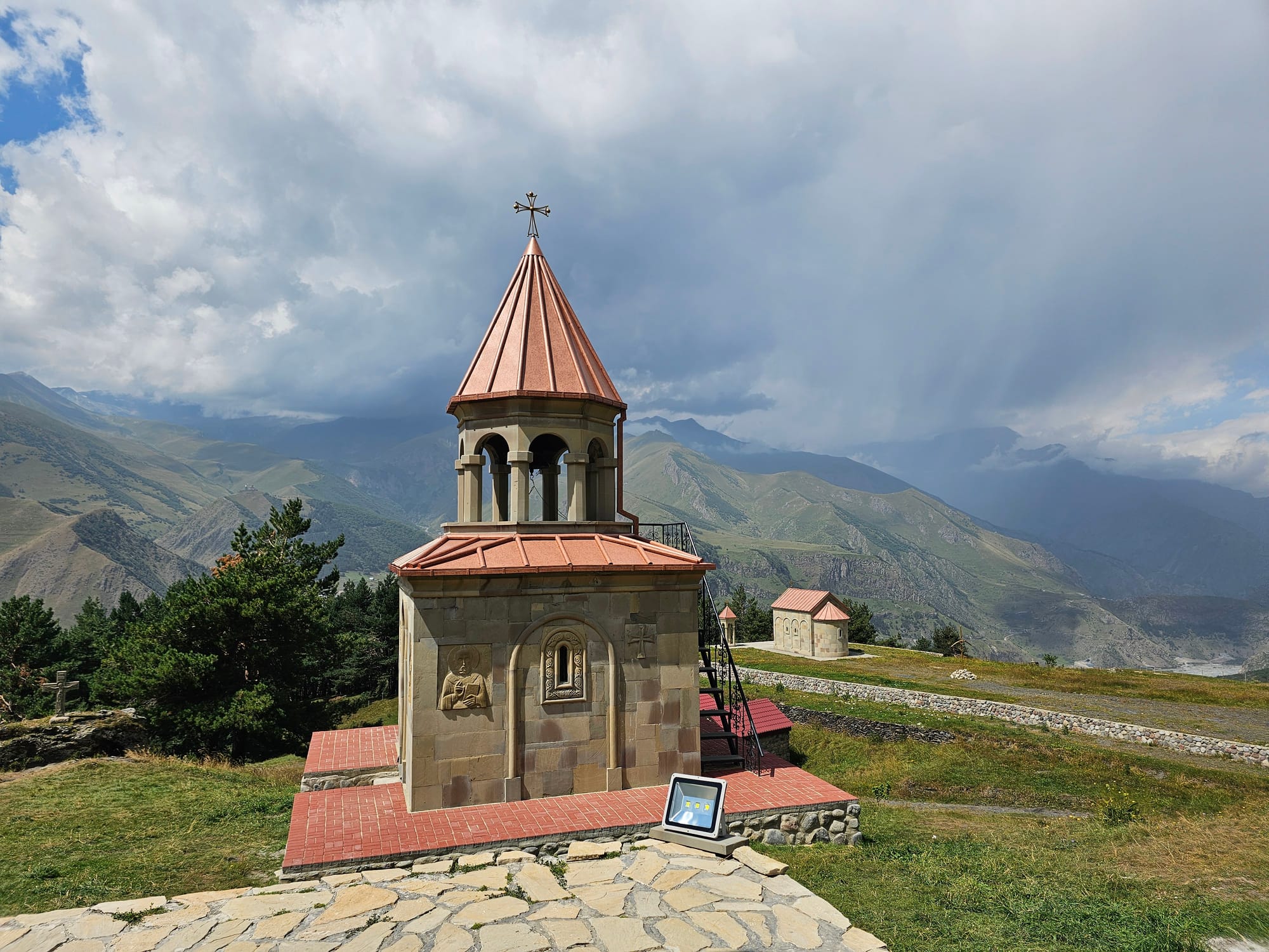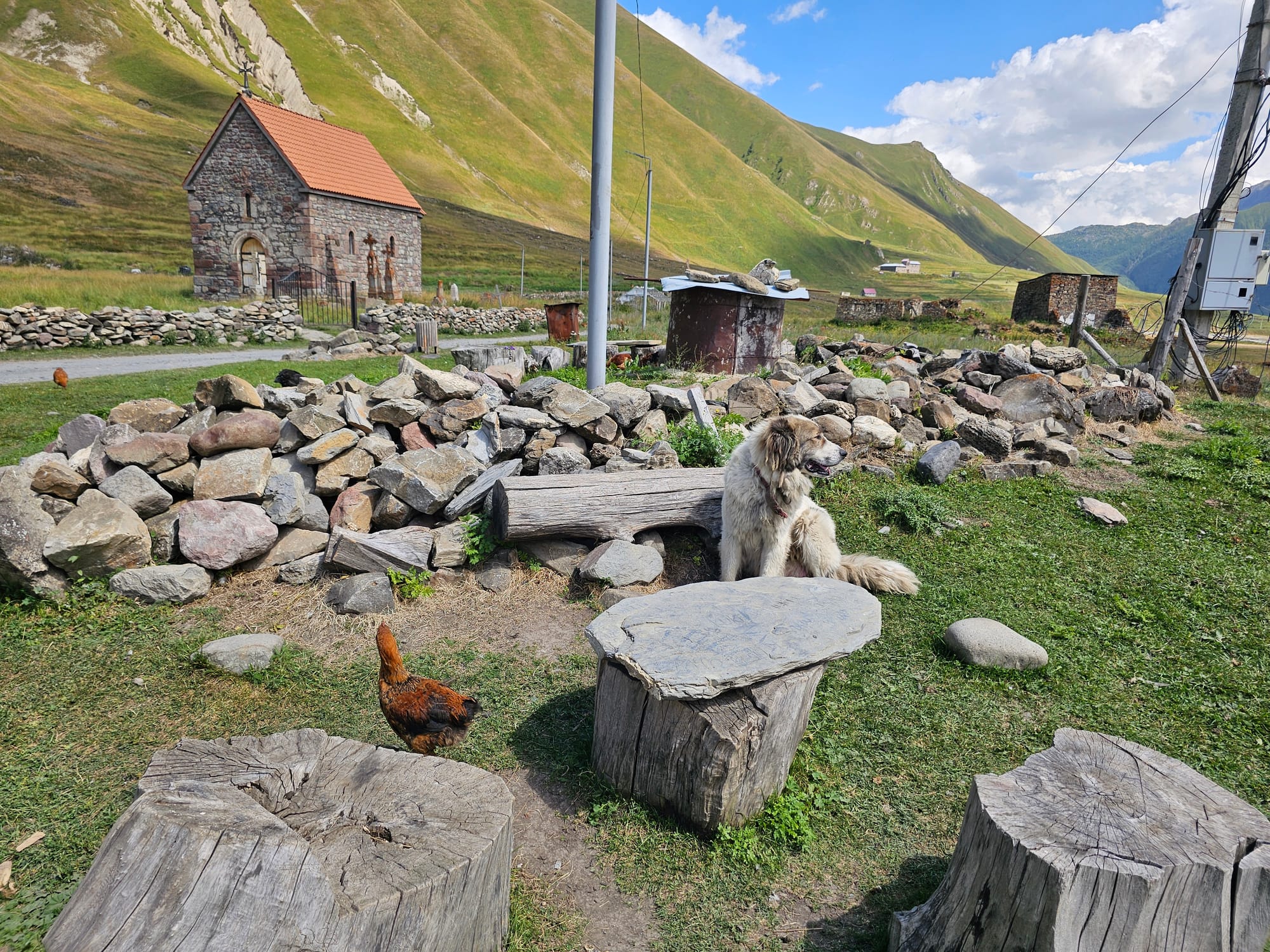 Четвертый день стал у нас днем отдыха перед большим хайком. Мы закупились едой, немного погуляли над деревней (хотя каким-то образом снова вышел небольшой хайк с перепадом высот больше 300 м). Посетили церковь Ильи Пророка (там было довольно много зданий, в том числе колокольня, внизу которой была комната с креслами и православными книгами).