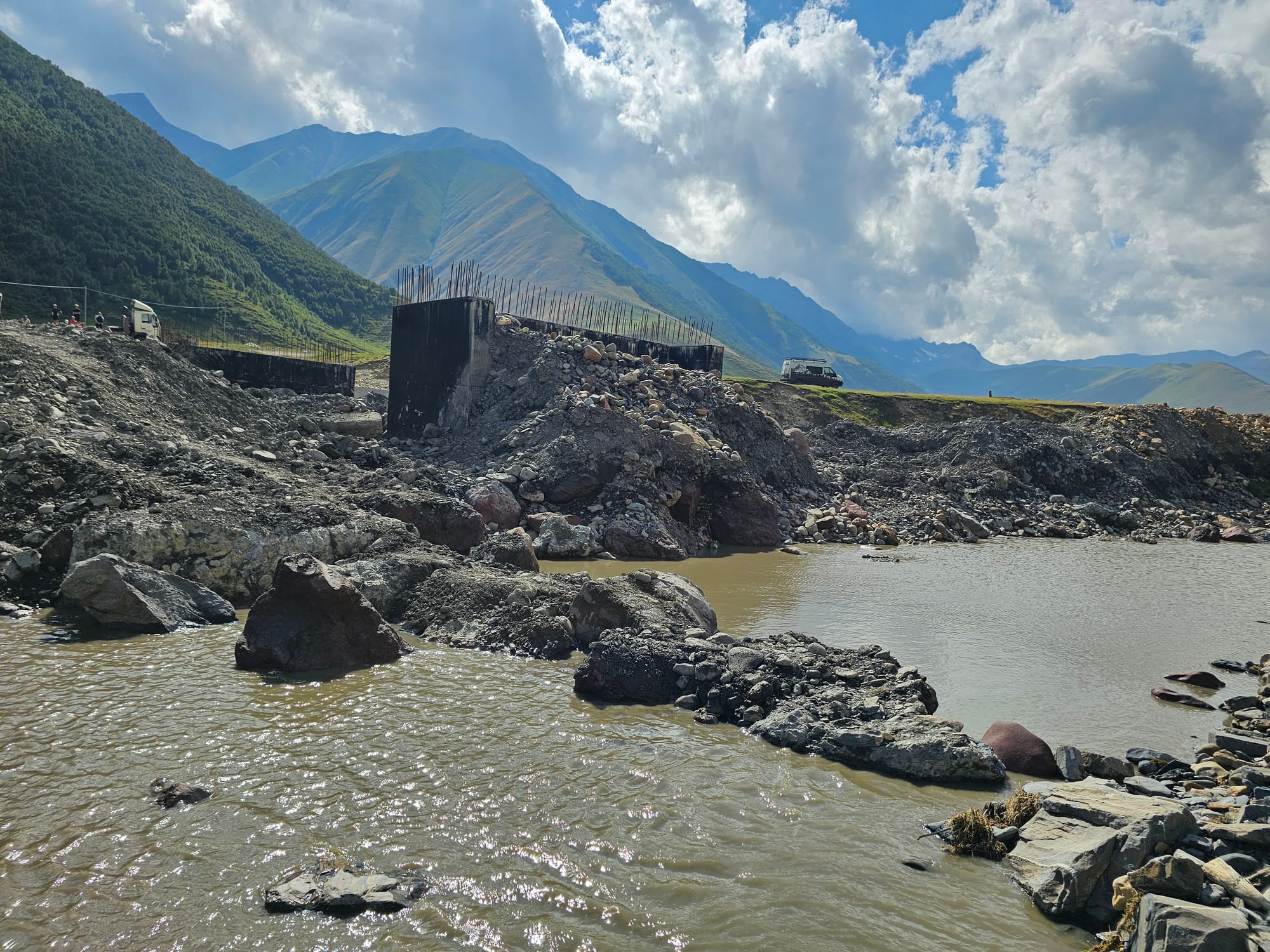 Обратно мы решили пойти по другой стороне реки, но внезапно оказалось, что моста, там где он нарисован на карте, нет. Точнее он прям сейчас строится заново. Но перейти было можно.